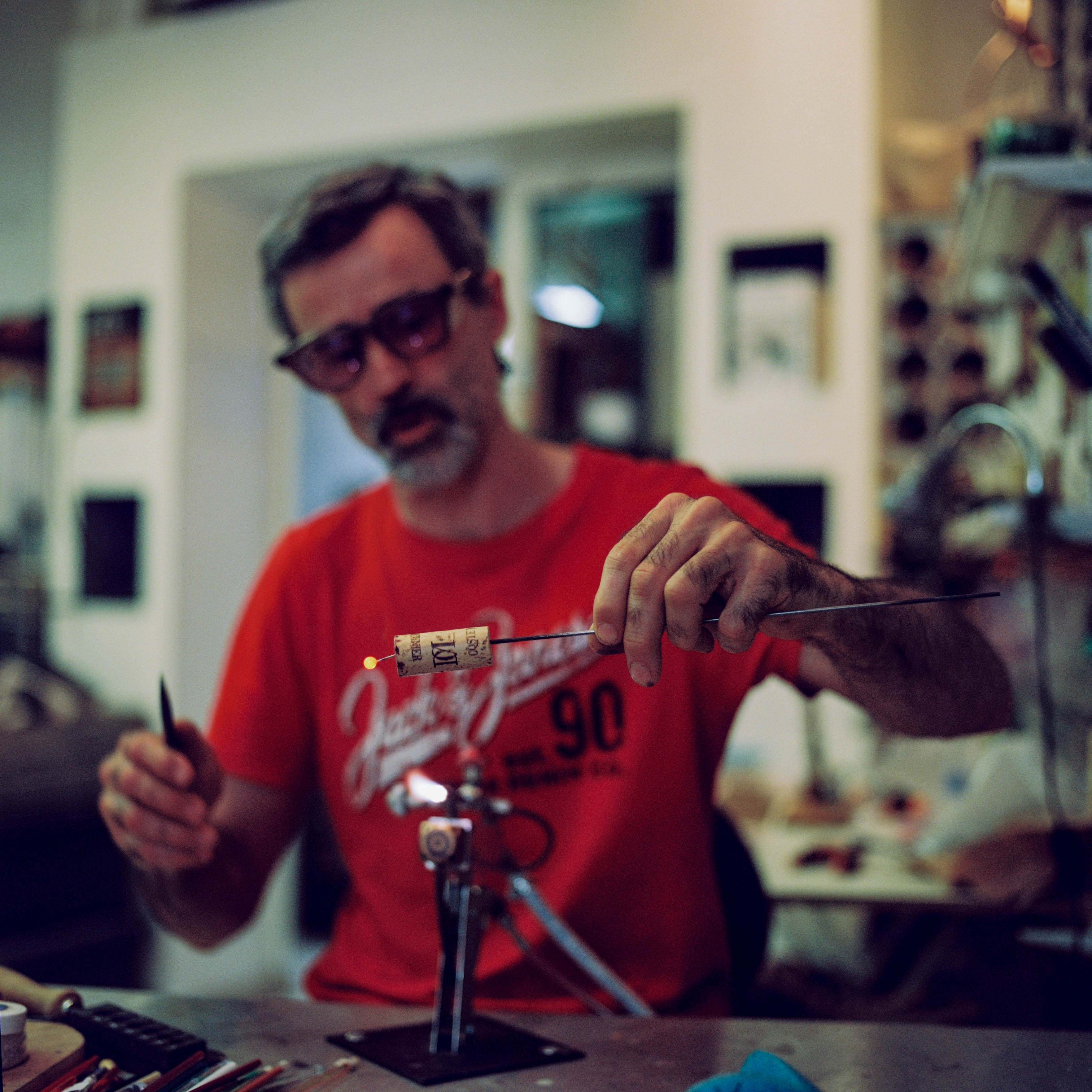 Juan vous ouvre les portes de son atelier pour apprendre les principes de base du filage de verre à la flamme d’un chalumeau.