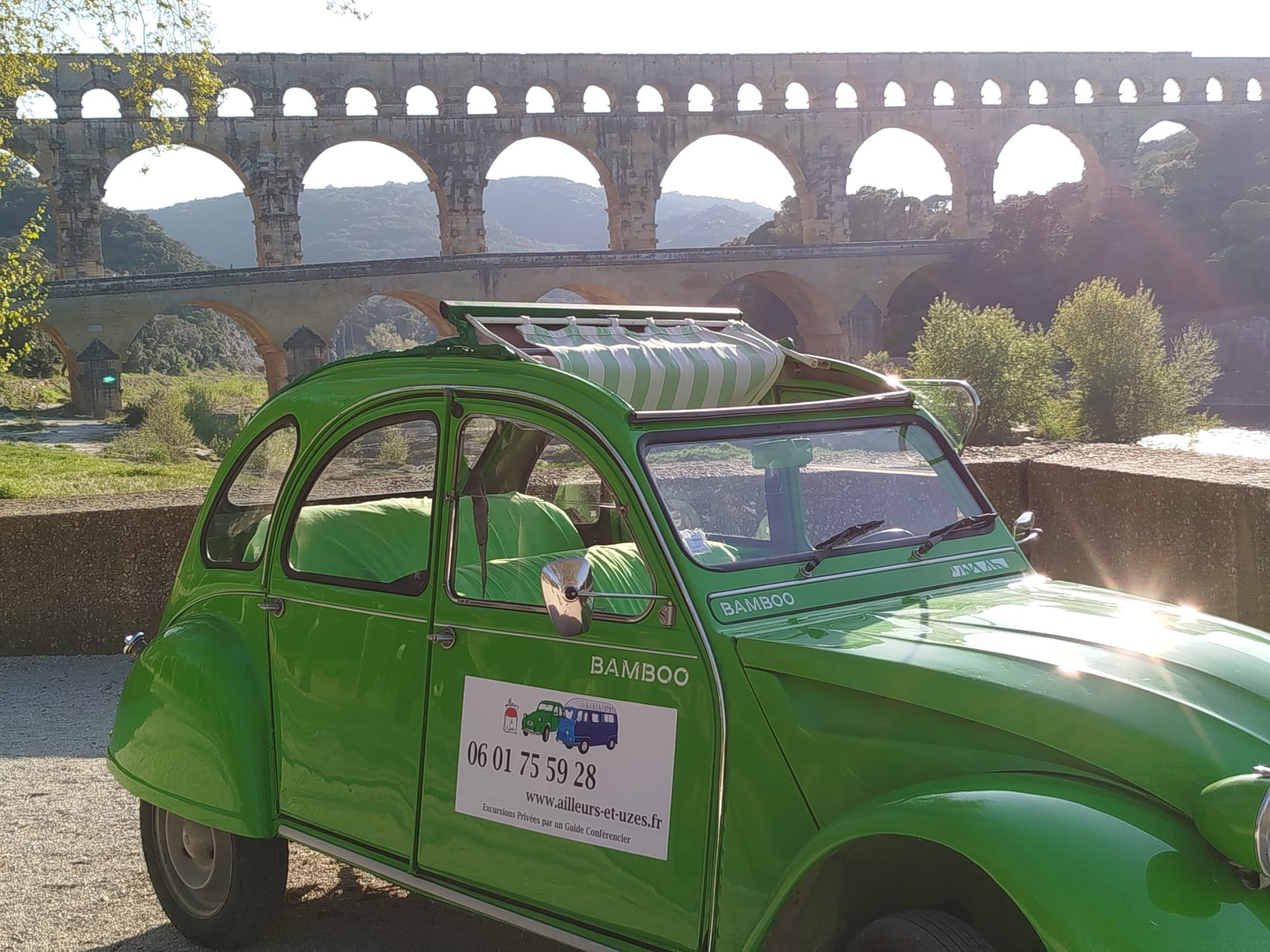 Florian, guide (« gardois » depuis +30 ans), propose des excursions à bord des plus emblématiques voitures françaises : la 2CV et l’Estafette. Avec énergie et passion, il vous amène hors des sentier battus, selon vos envies dans le Gard-provençal.