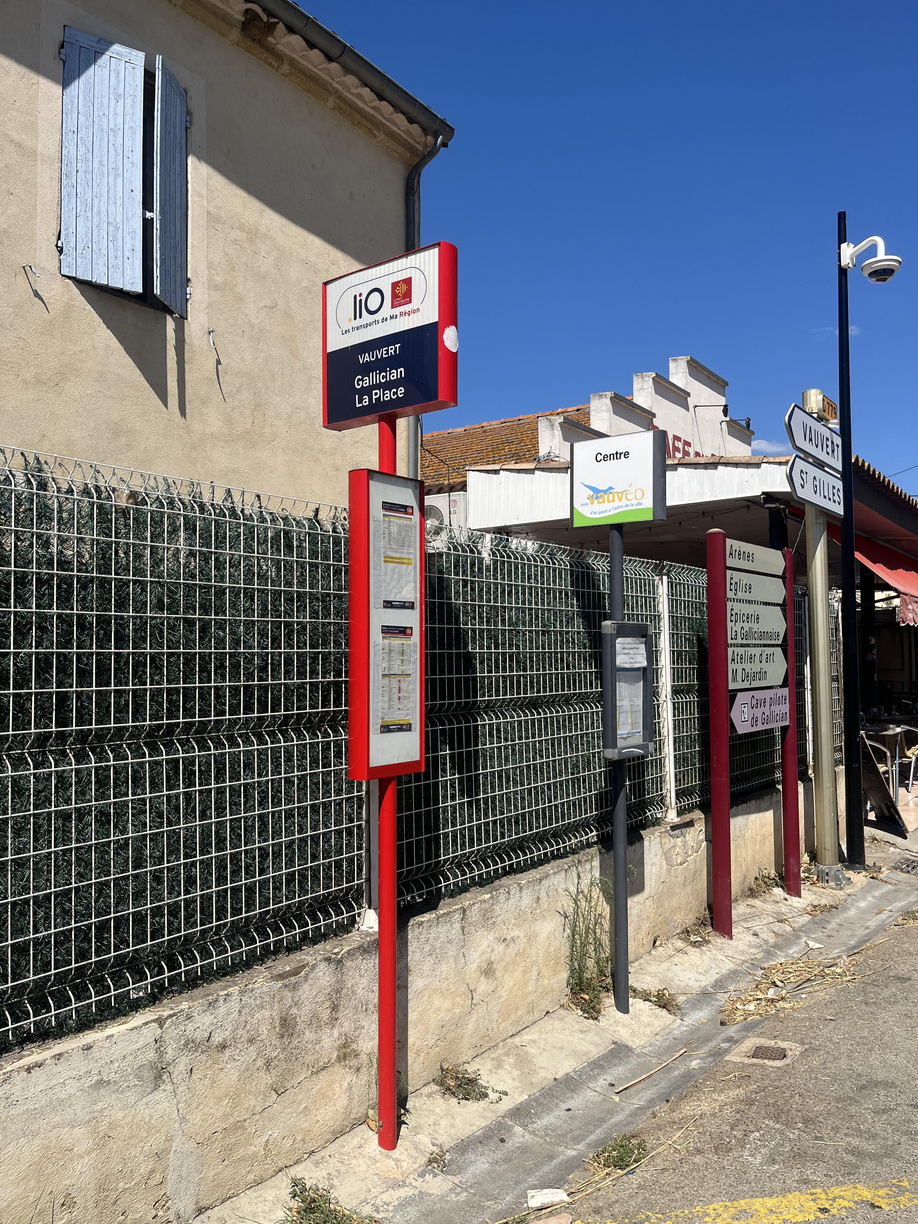 Arrêt de la navette Vauvéo dans le centre de Gallician.