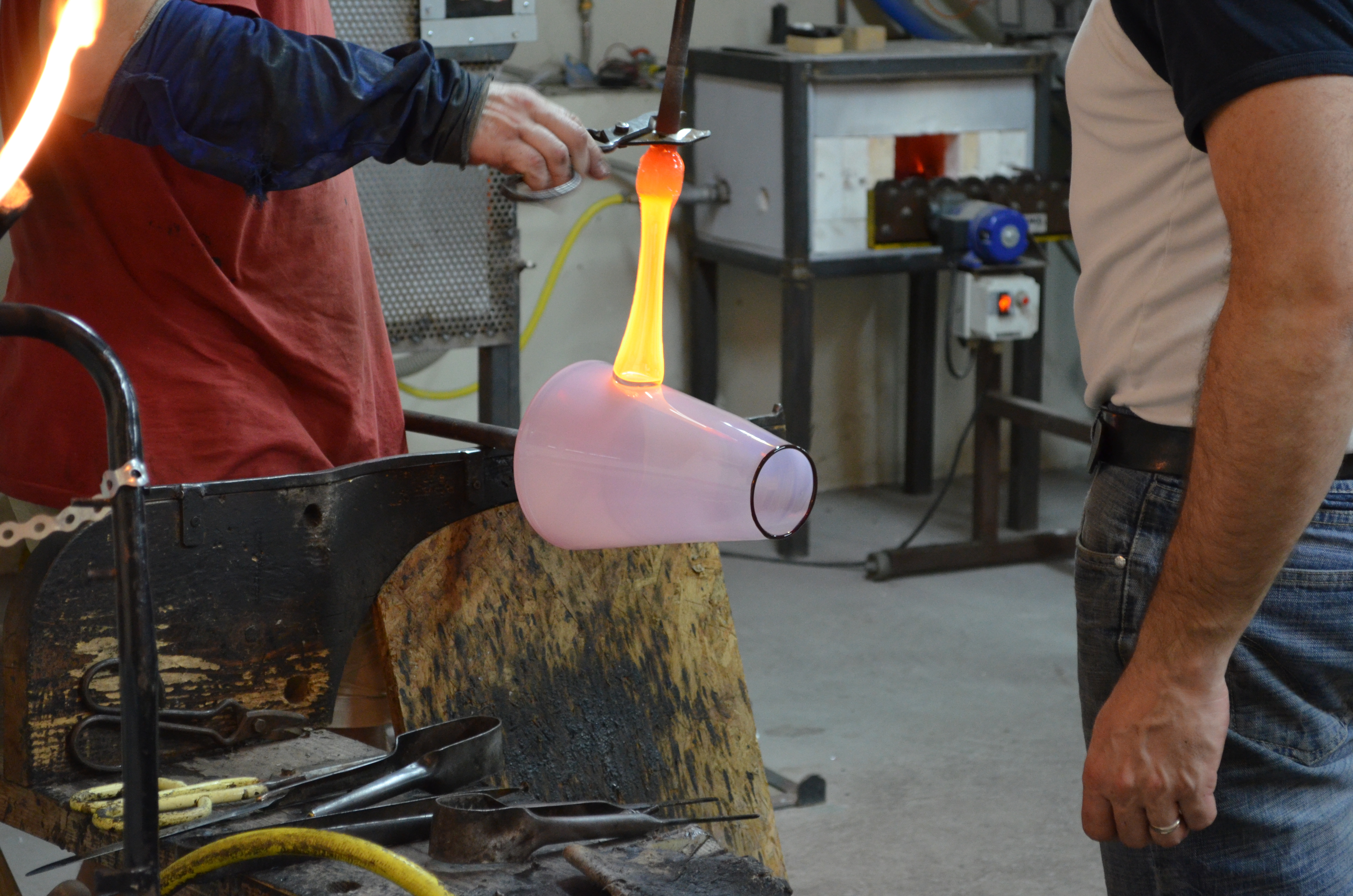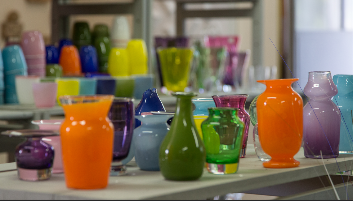 Atelier de souffleur de verre artisanal. Art de la table et pièces décoratives, design contemporain. Possibilité de voir la fabrication quotidienne. Entrée libre.