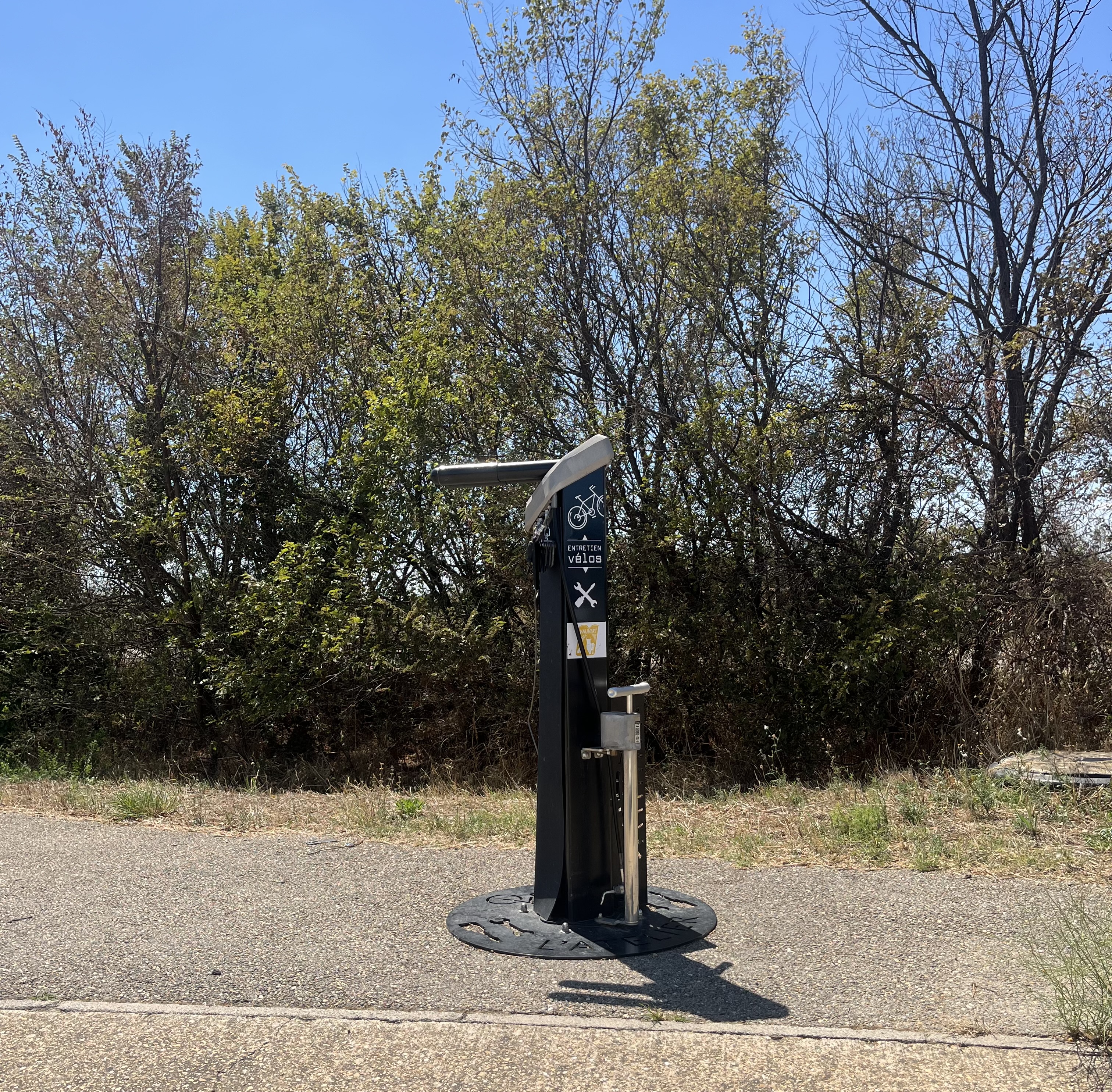 Aire de réparation de vélos, proche du collège et de la voie verte reliant Vauvert à Gallician.