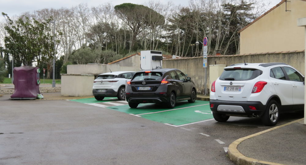 3 bornes de recharge pour voitures électriques.