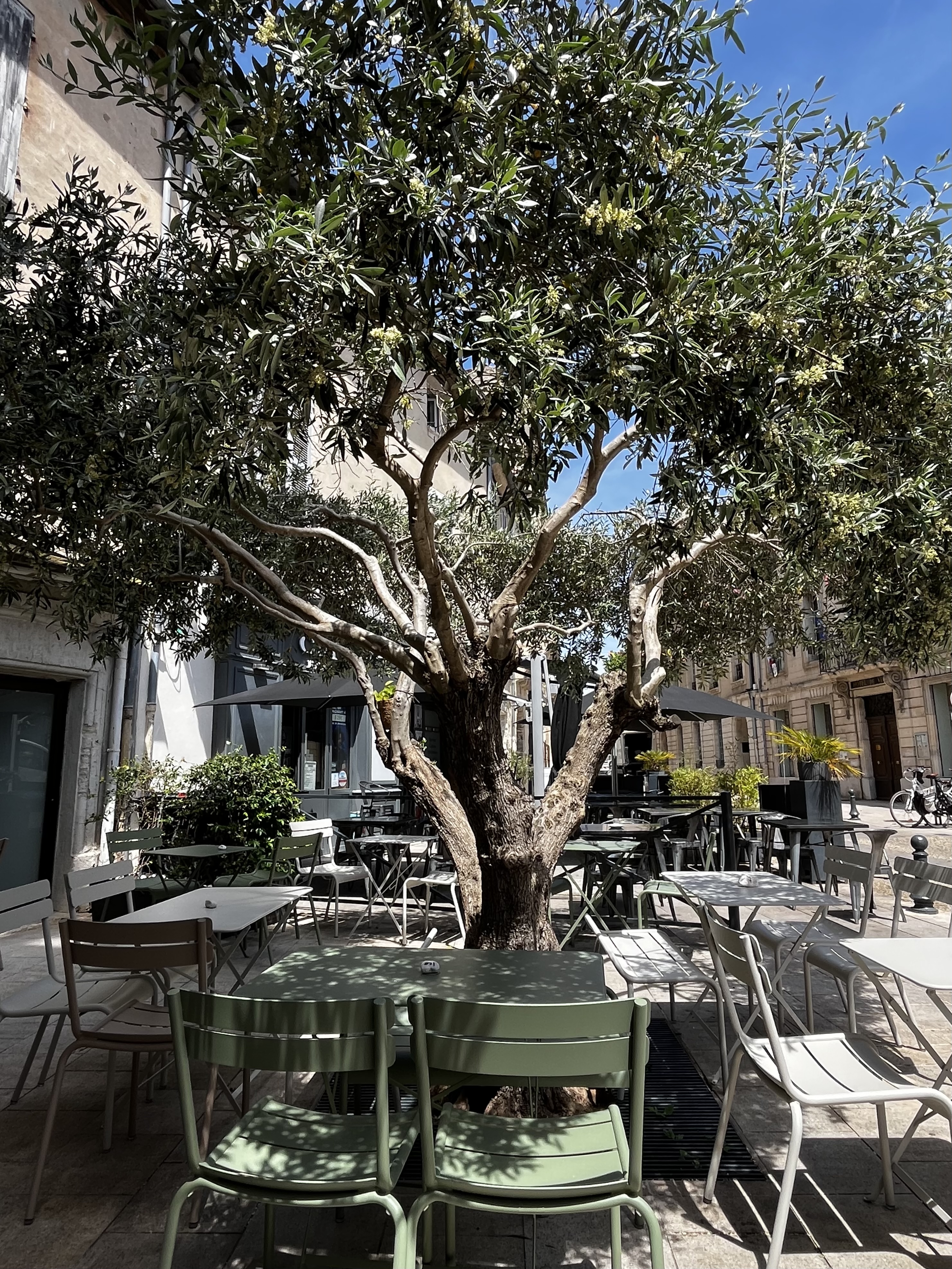 Nous vous accueillons sur notre terrasse ombragée du cœur de ville de Villeneuve les Avignon