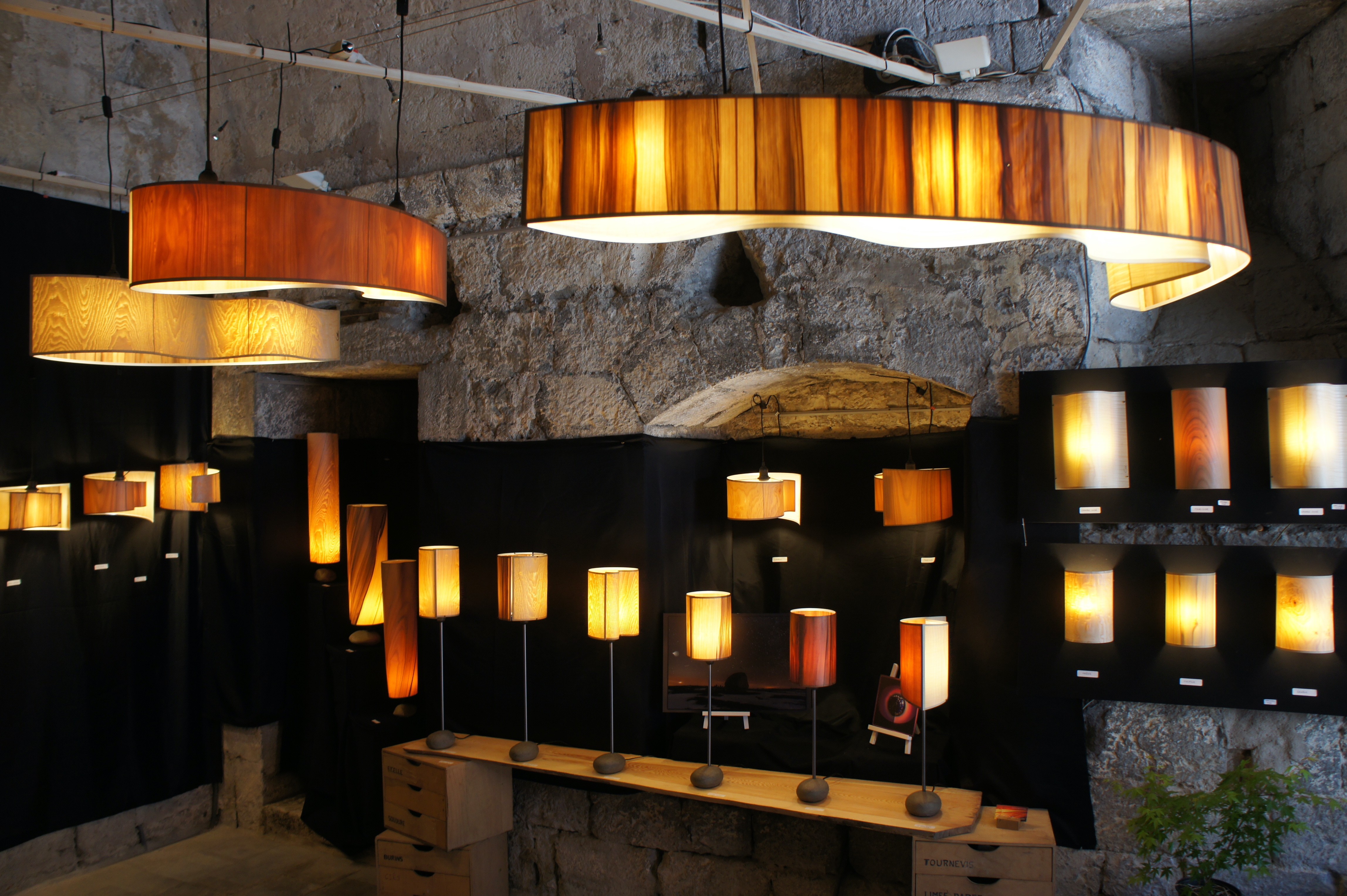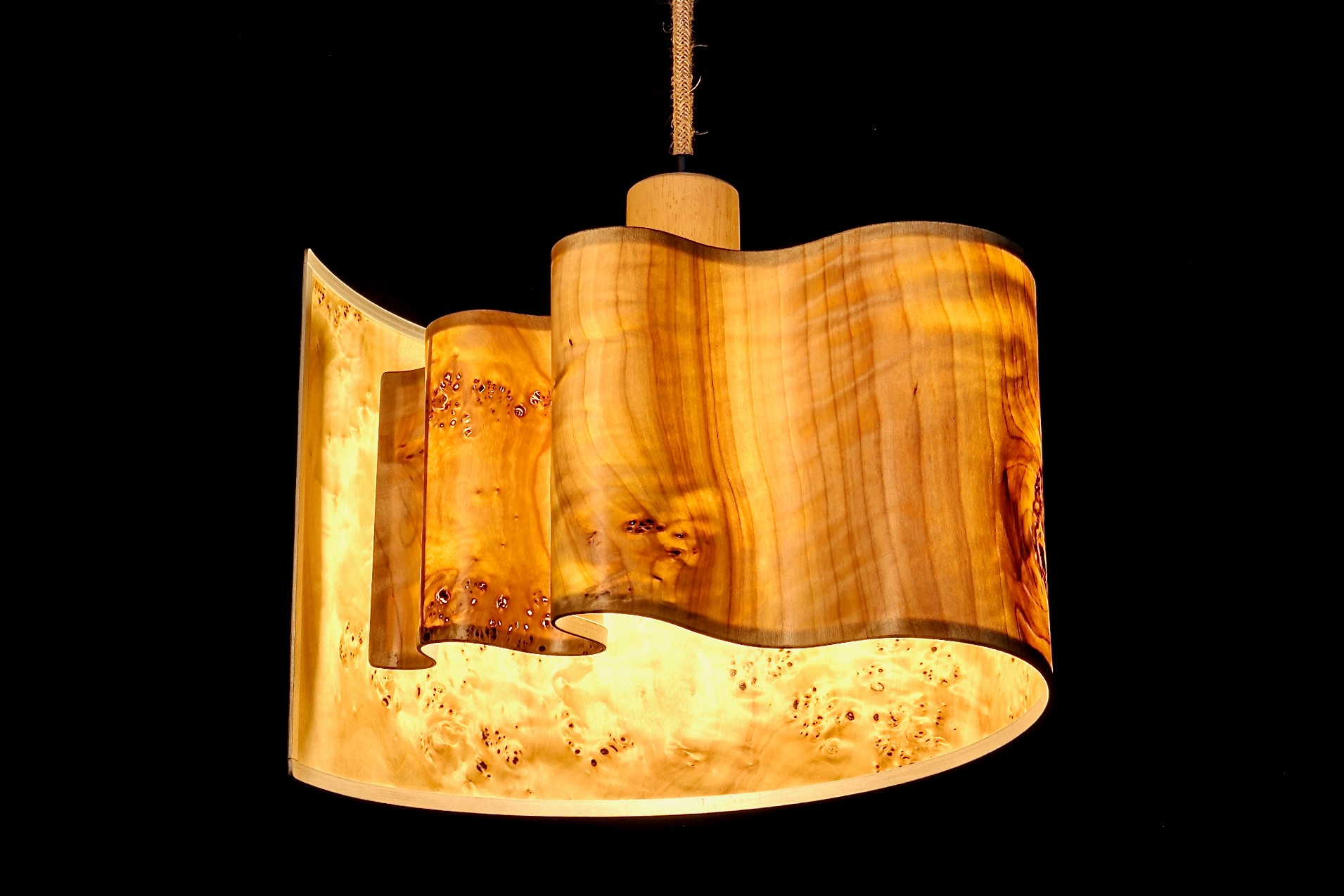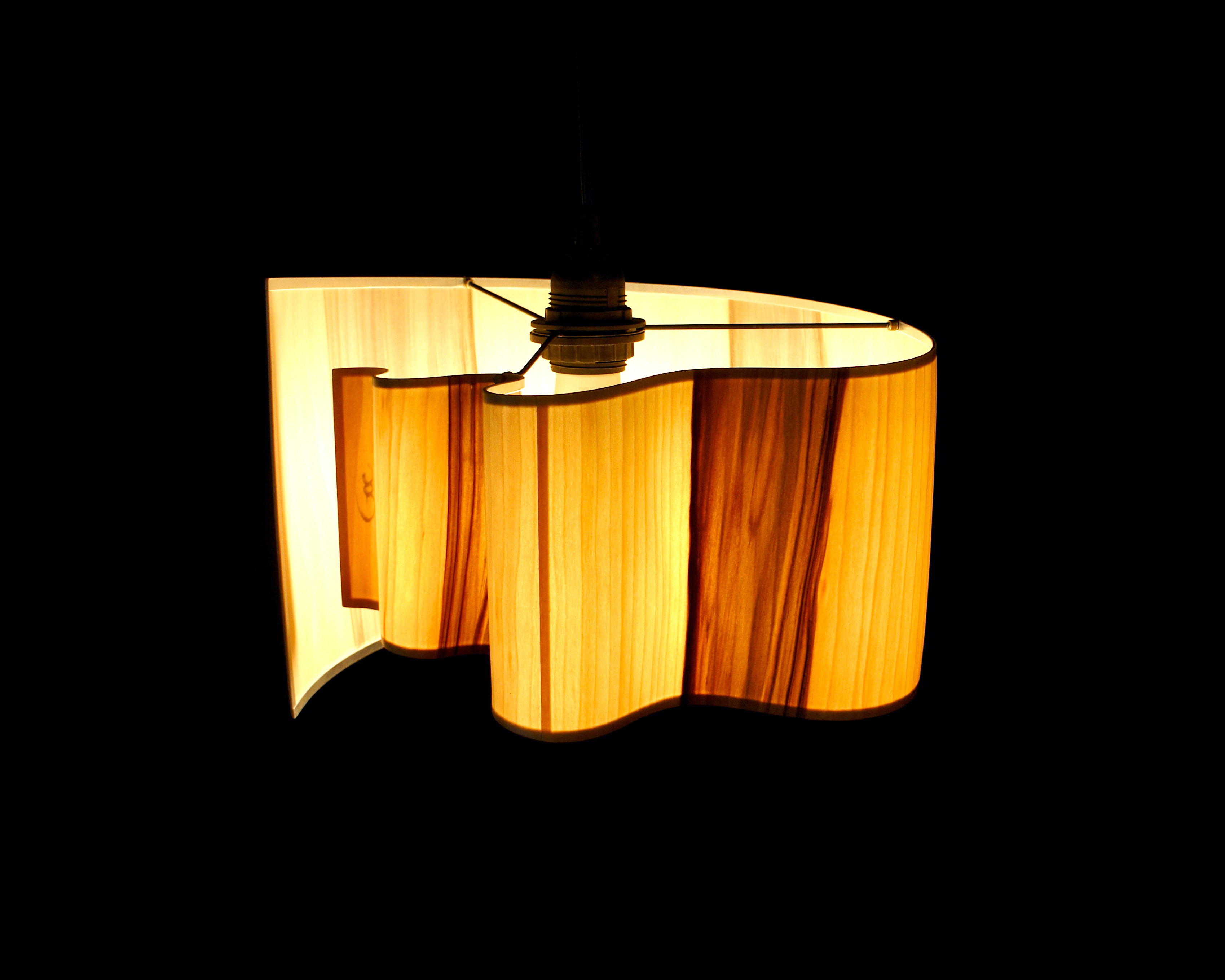Goë luminaires crée des luminaires en bois translucides, composés de bois de très fine épaisseur qui laisse passer la lumière.