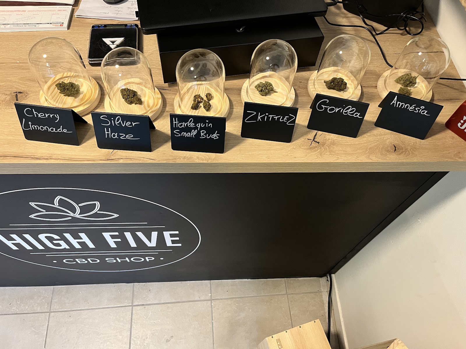 High Five Barjac, votre boutique de CBD: fleurs, résines, huiles, cosmétiques, cigarettes électronique et produits gourmands. Découvrez des produits de qualité premium, des conseils personnalisés et une approche naturelle pour votre bien-être au quotidien
