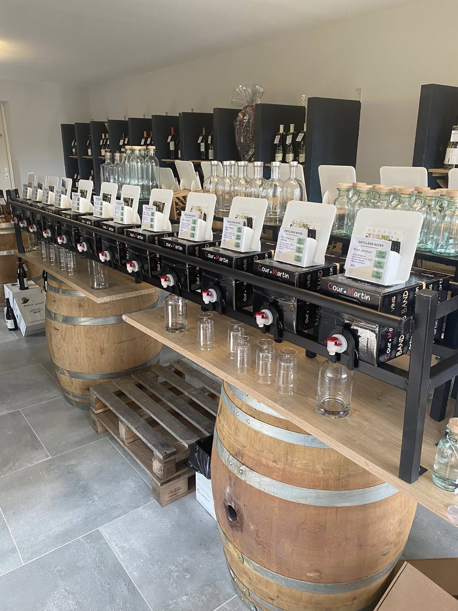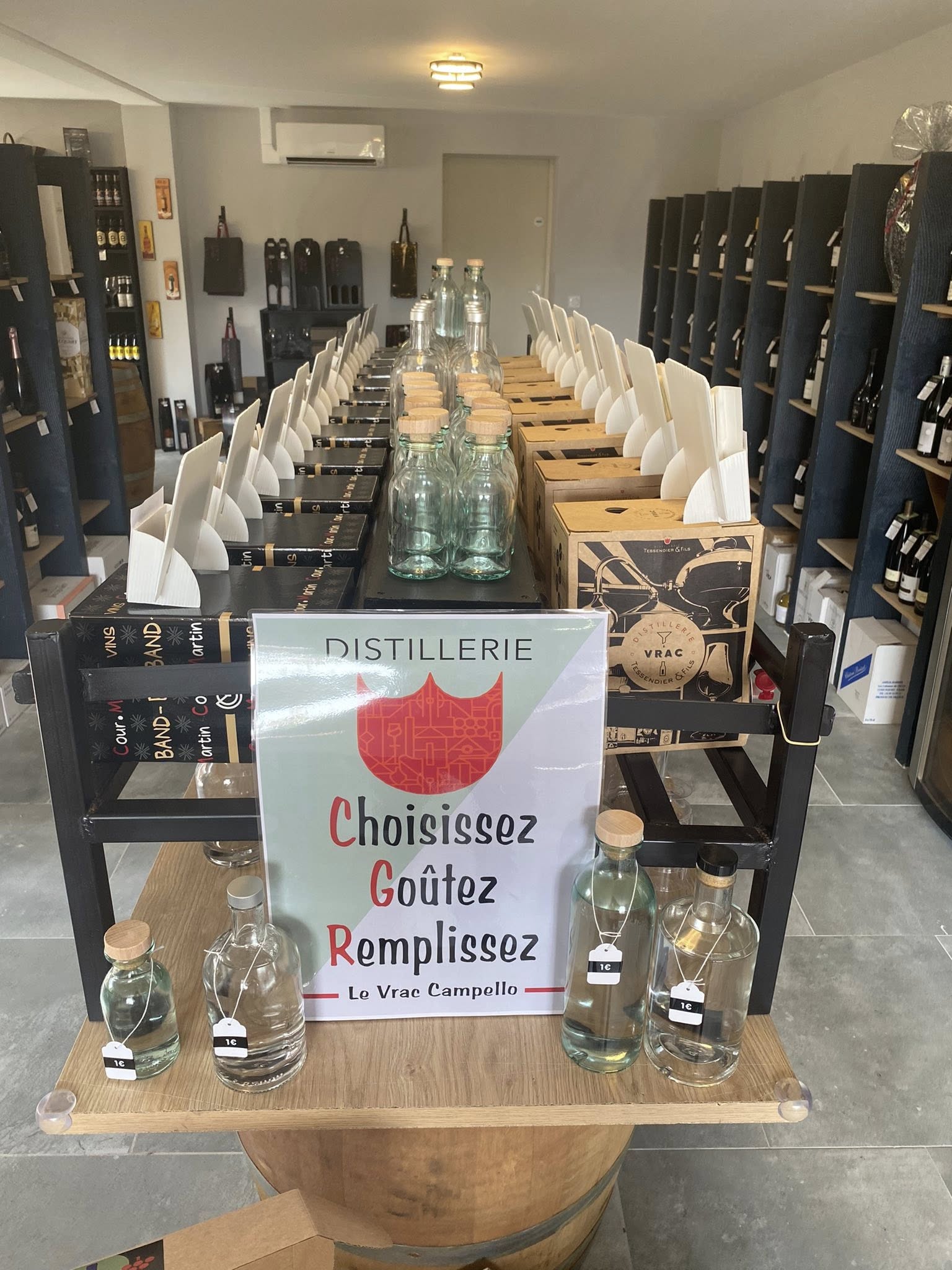Une vingtaine de références sont proposées — rhums, pastis, limoncello, spritz, whiskies, vodkas… Le vrac, à la fois économique et écologique, permet de recharger son contenant et de découvrir des spiritueux de qualité à prix doux.