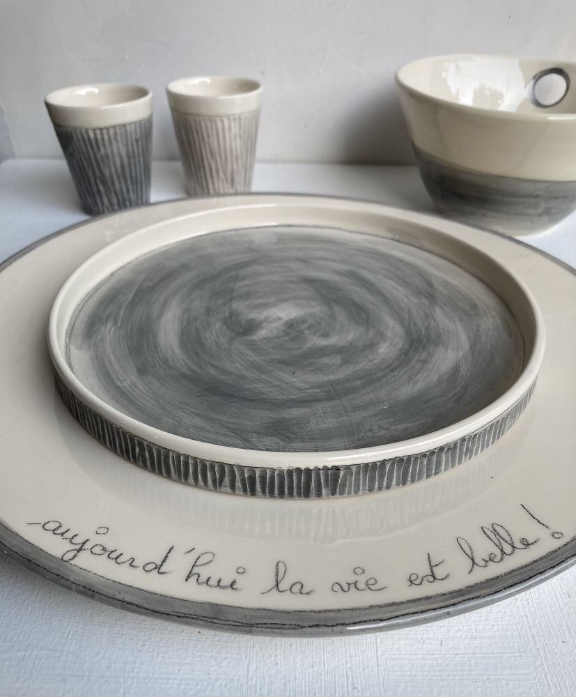 Atelier de céramique, fabrication d’objets destinés à l’art de la table en faïence. Vaisselle aux formes et couleurs originales.