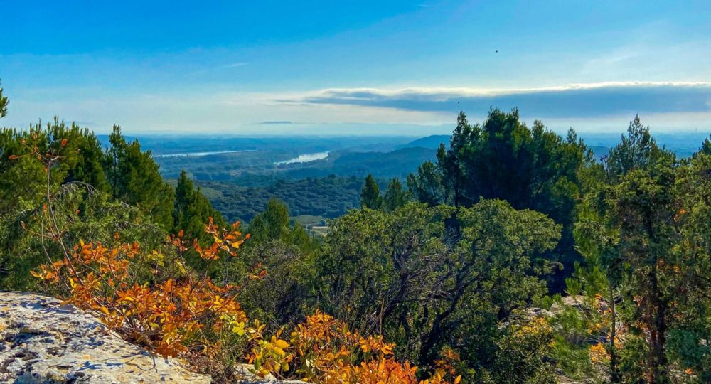 Balade à pied facile autour de l’Abbaye de Saint-Roman à Beaucaire, avec une vue imprenable sur la vallée du Rhône, les Alpilles, avec en toile de fond le mont Ventoux. Randonnée à faire avec les enfants.