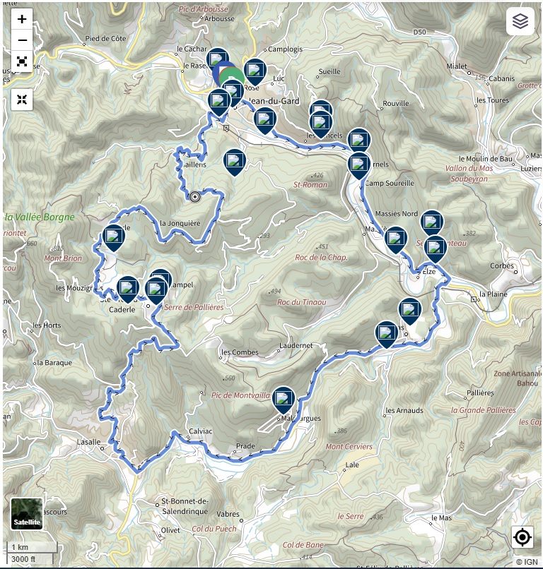 Vous traverserez les communes de Saint-Jean-du-Gard, Thoiras, Saint-Bonnet-de-Salendrinque et Sainte-Croix-de-Caderle.