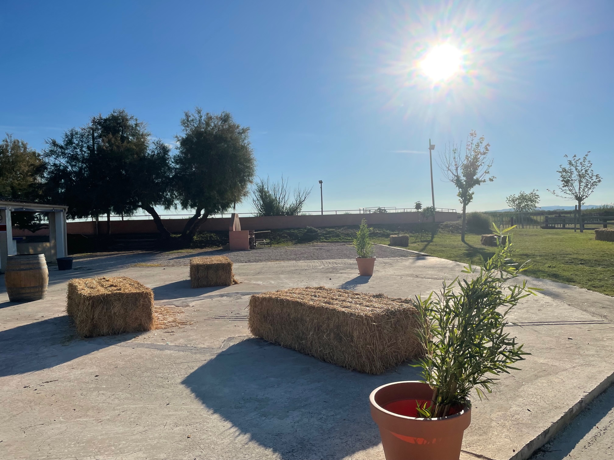 Stationnement facile, terrain de boule, arènes, mis à disposition avec frigo, congélateur, table et chaise. Possibilité de restauration, menu élaboré à la demande avec la viande et charcuterie de notre élevage, possibilité de visite de la manade en remorque tractée, ou a cheval.