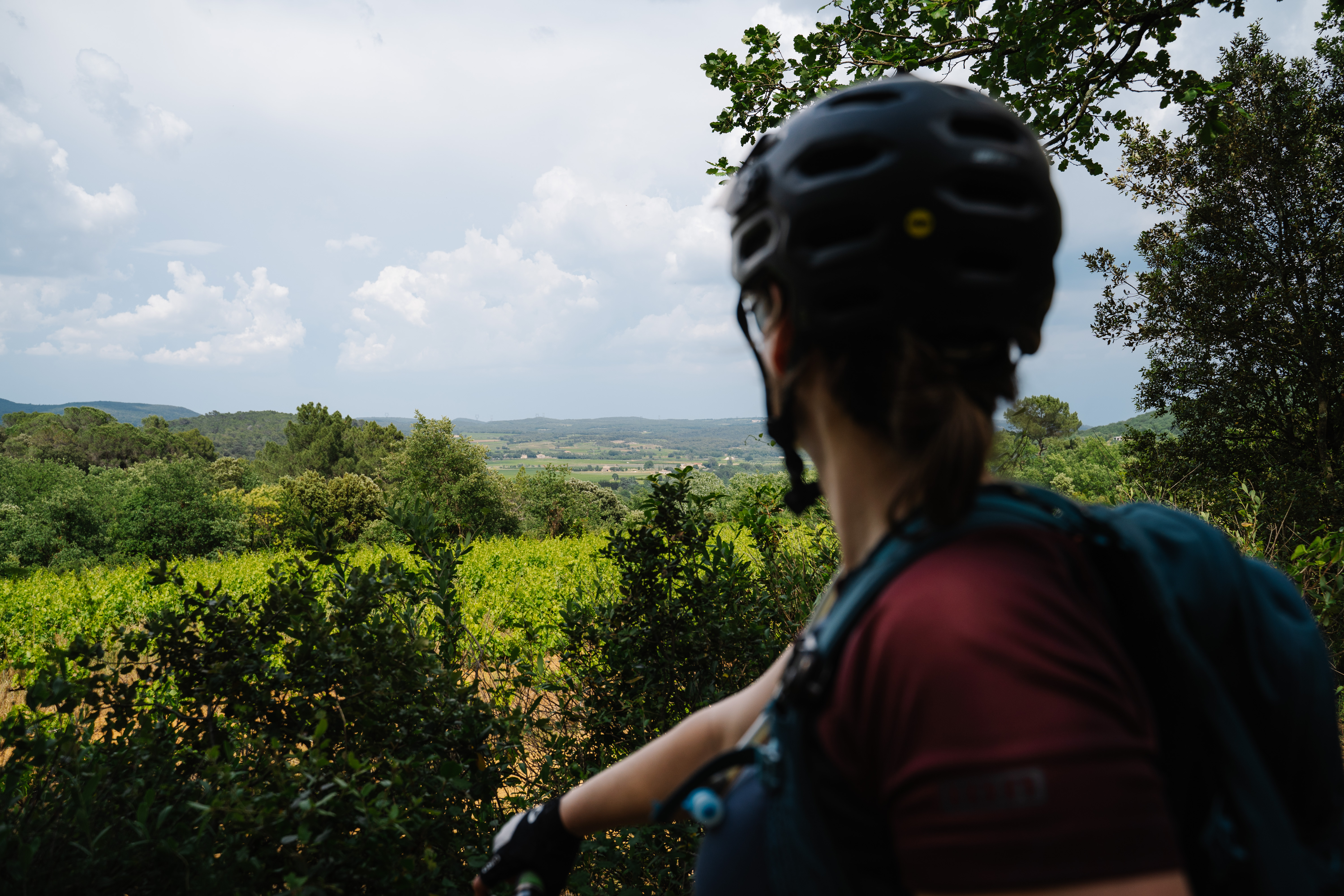 Succession de montées et descentes, entre piste, route et monotraces pour rejoindre le petit village de St Laurent de Carnols. Retour par une belle piste roulante offrant un joli décor sur le vignoble de St Gély. Avant l’arrivée, un dernier petit monotrace conclut cette belle boucle.