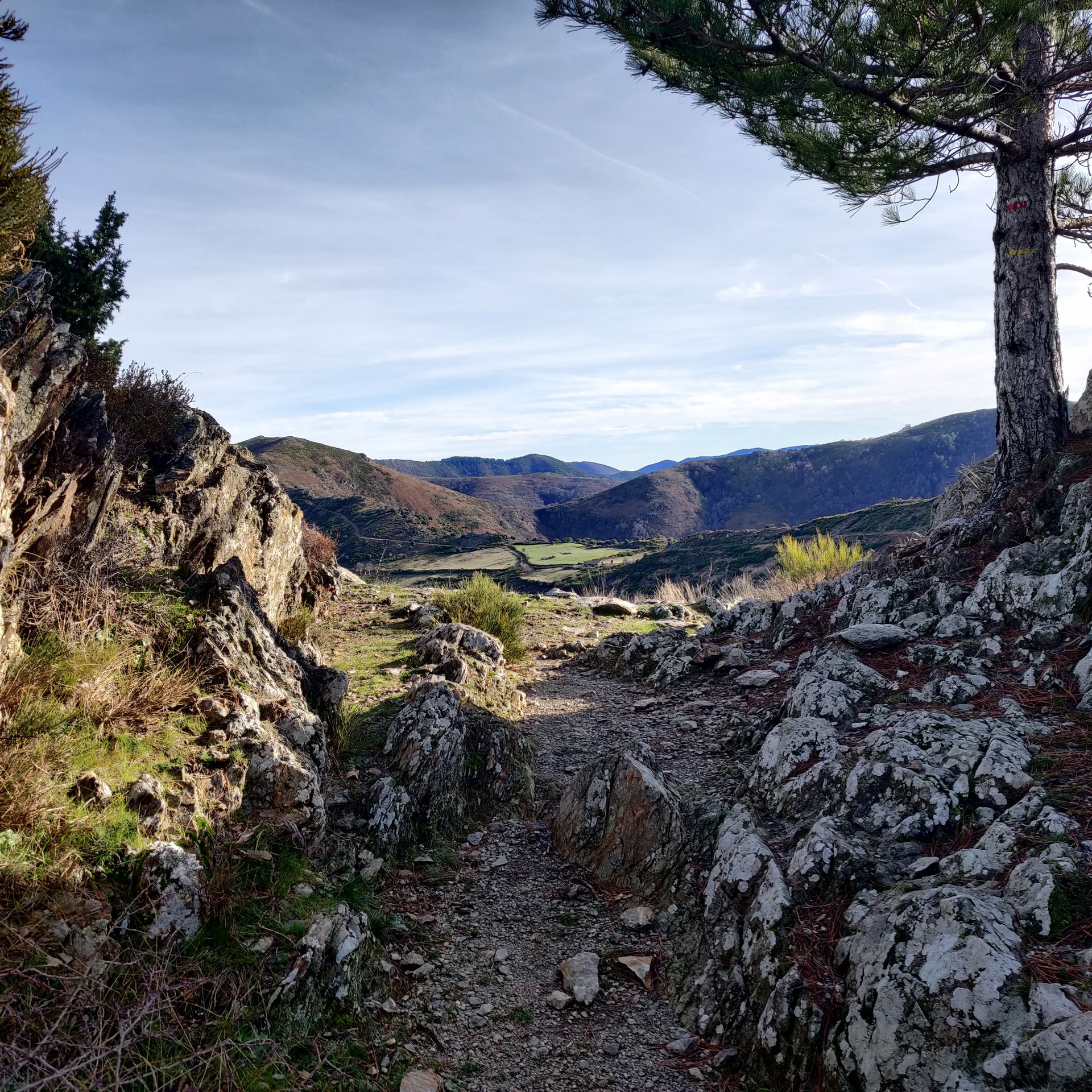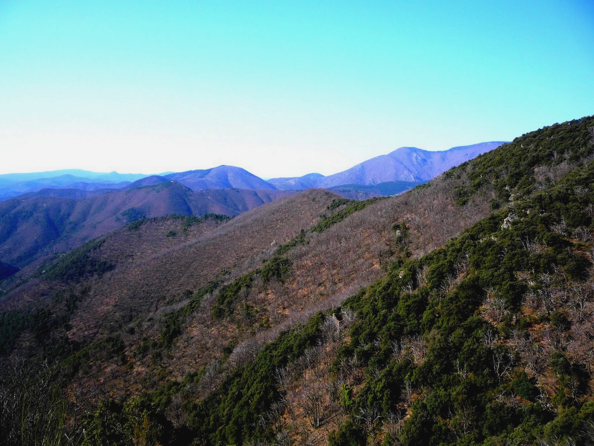 Il faut prendre de la hauteur, c’est inévitable ! Le chemin de crête offre une vue sur les serres et valats, et sur les montagnes aux teintes bleutées. Face à vous, les Cévennes s’étendent à l’horizon.