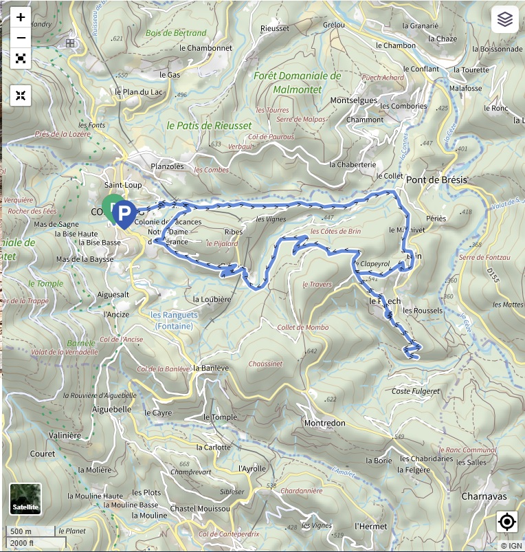 Autour de la colline du Pijalard et sur les côtes de Brin, le circuit bien ombragé l’été s’approche du ruisseau de la Conne où, en face du petit pont, se trouvait l’ancienne carrière de lauzes locales.