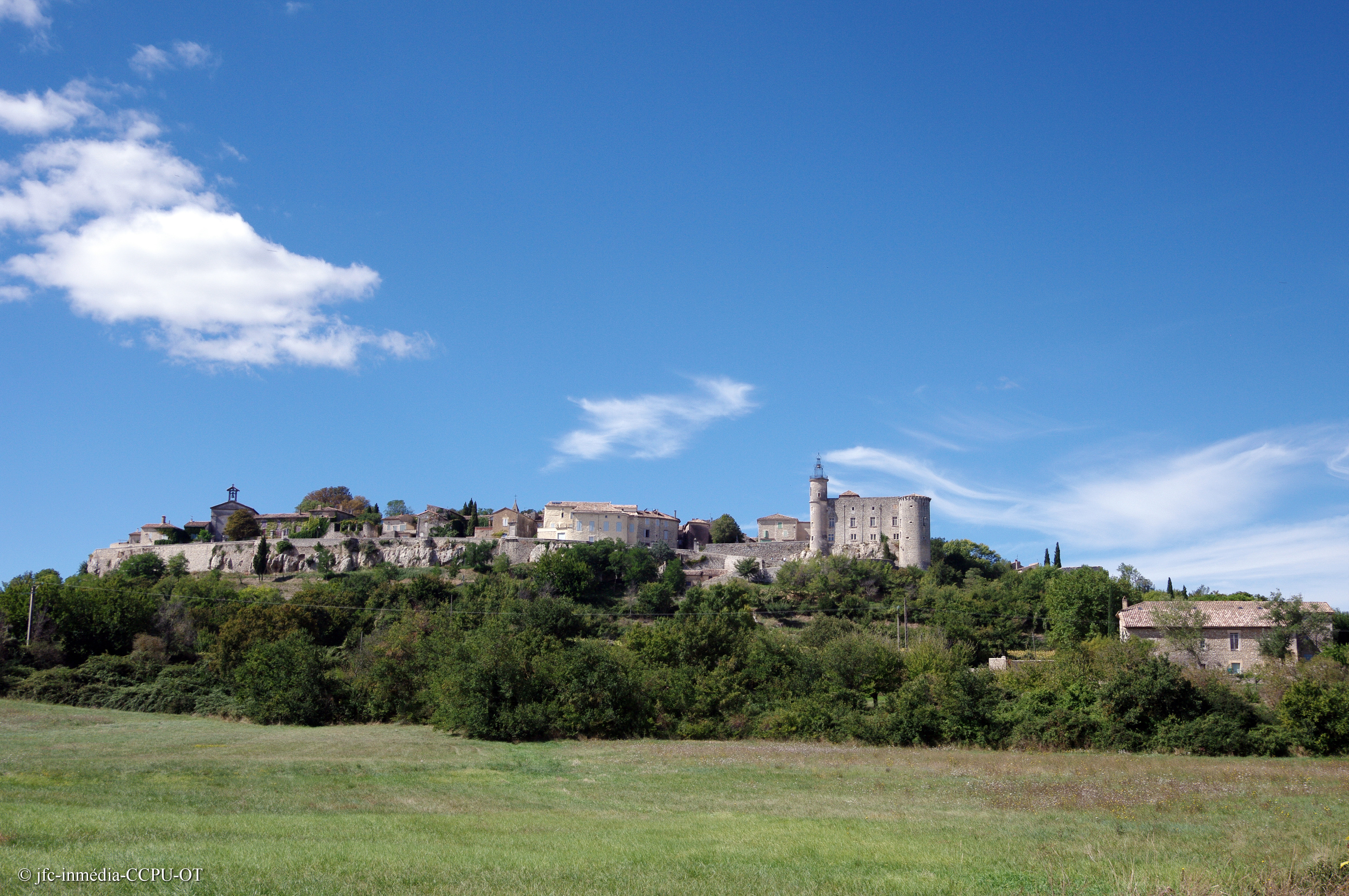 Départ de Lussan du parking aménagé au pied du village.