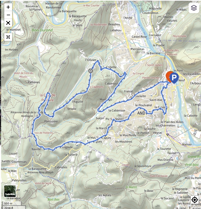 Continuer vers la Croix de Pallières, Travillargues, La Cabanisse et retour sur Anduze