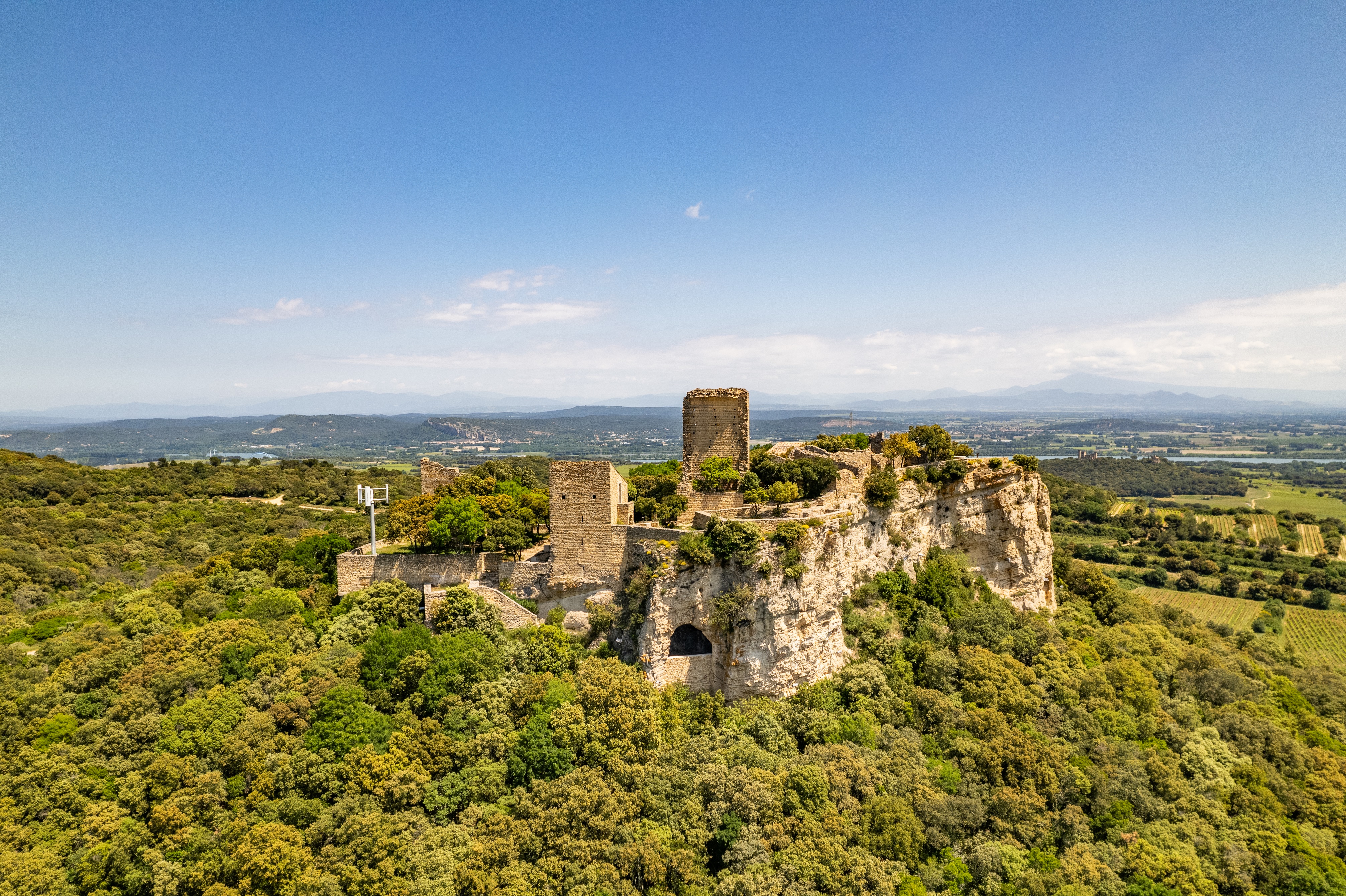 En cheminant à travers la garrigue et les pins, vous accéderez à un panorama à 360° époustouflant : les Alpes, le Mont Ventoux et les dentelles de vignes qui dessinent le paysage en contrebas. C’est un lieu chargé d’histoire où la viticulture a toujours eu sa place, offrant une lecture géographique parfaite de nos Appellations.