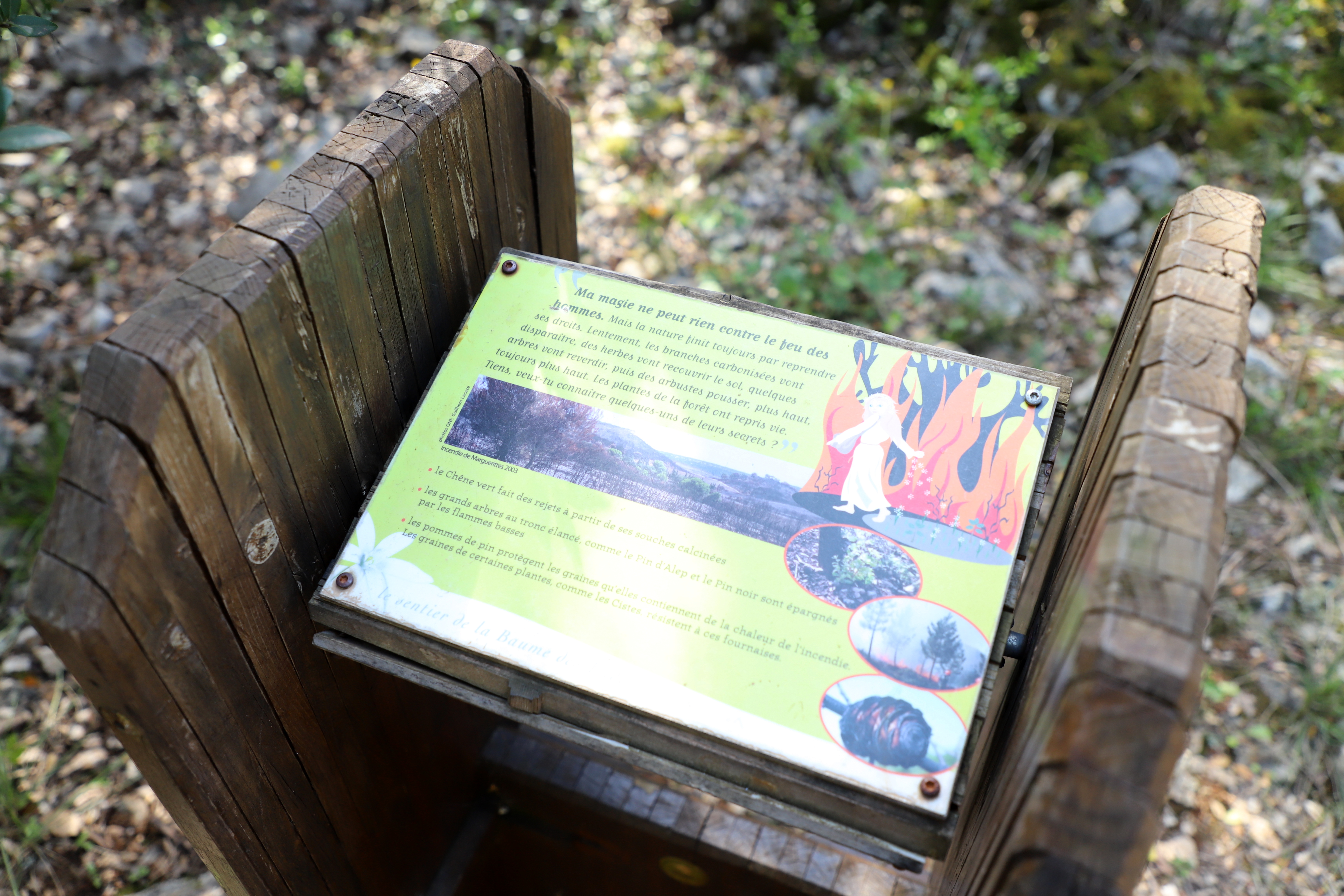Tout au long du parcours, des panneaux pédagogiques permettent de découvrir la faune, la flore et la géologie caractéristiques du territoire : essences typiques de garrigue, formation des reliefs calcaires, traces d’occupation humaine… Une manière ludique et instructive d’appréhender le paysage.
