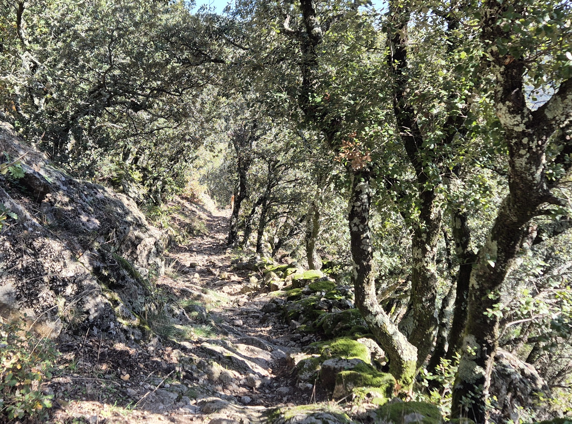 Cette balade vous entraîne sur les premiers contreforts des Cévennes, là où le calcaire du piémont se mêle aux pentes granitiques du massif du Mont Liron. Dominant le village de Soudorgues, cette montagne fut jadis un refuge et un point stratégique pour les Camisards, puis pour les maquisards durant la Seconde Guerre mondiale. Entre chênes verts et murets de pierre, l’histoire y murmure encore. Du point de vue de Mauripe, la vallée de la Salendrinques s’ouvre, témoin silencieux et secret de ces épopées cévenoles.