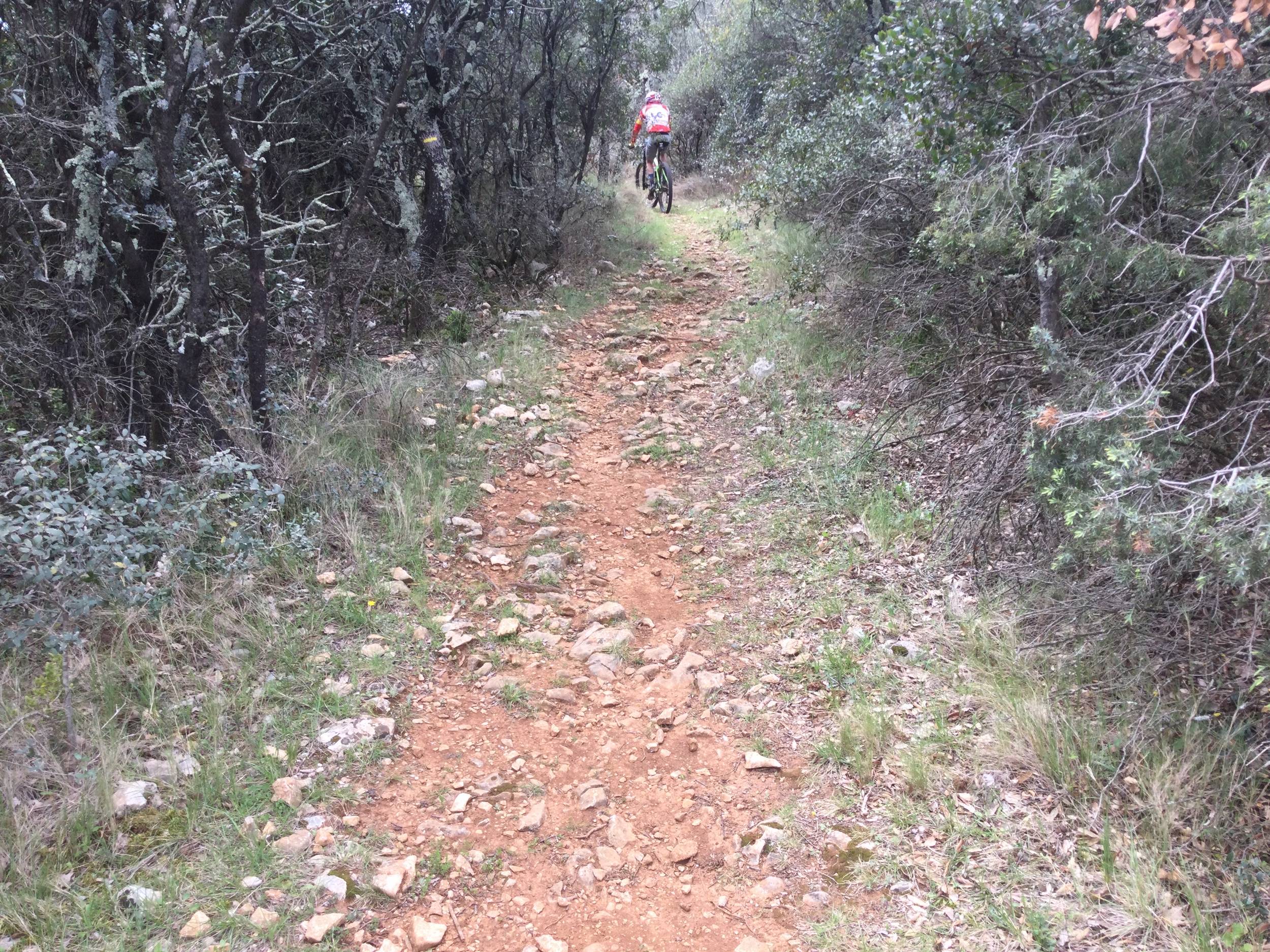 Ce parcours intermédiaire alterne singles joueurs et portions plus roulantes sur le Serre de la Grange. À proximité d’un site XCO, l’itinéraire propose quelques passages techniques pour les vététistes en progression, dans un environnement de garrigue où affleurent les reliefs calcaires typiques du secteur.