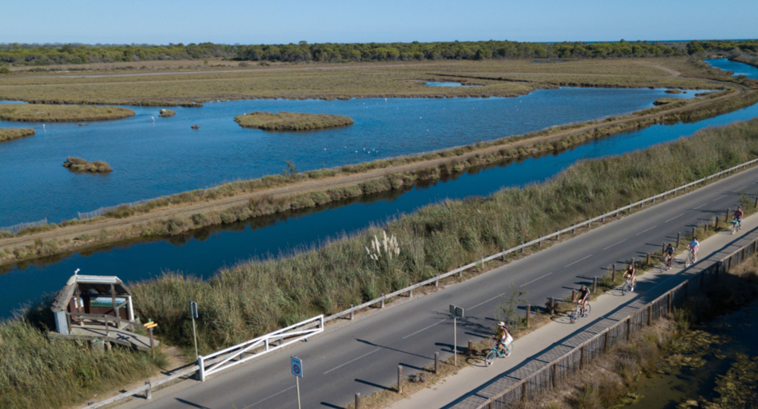 Voie verte de la ville du Grau du Roi à la plage sauvage de l’Espiguette.