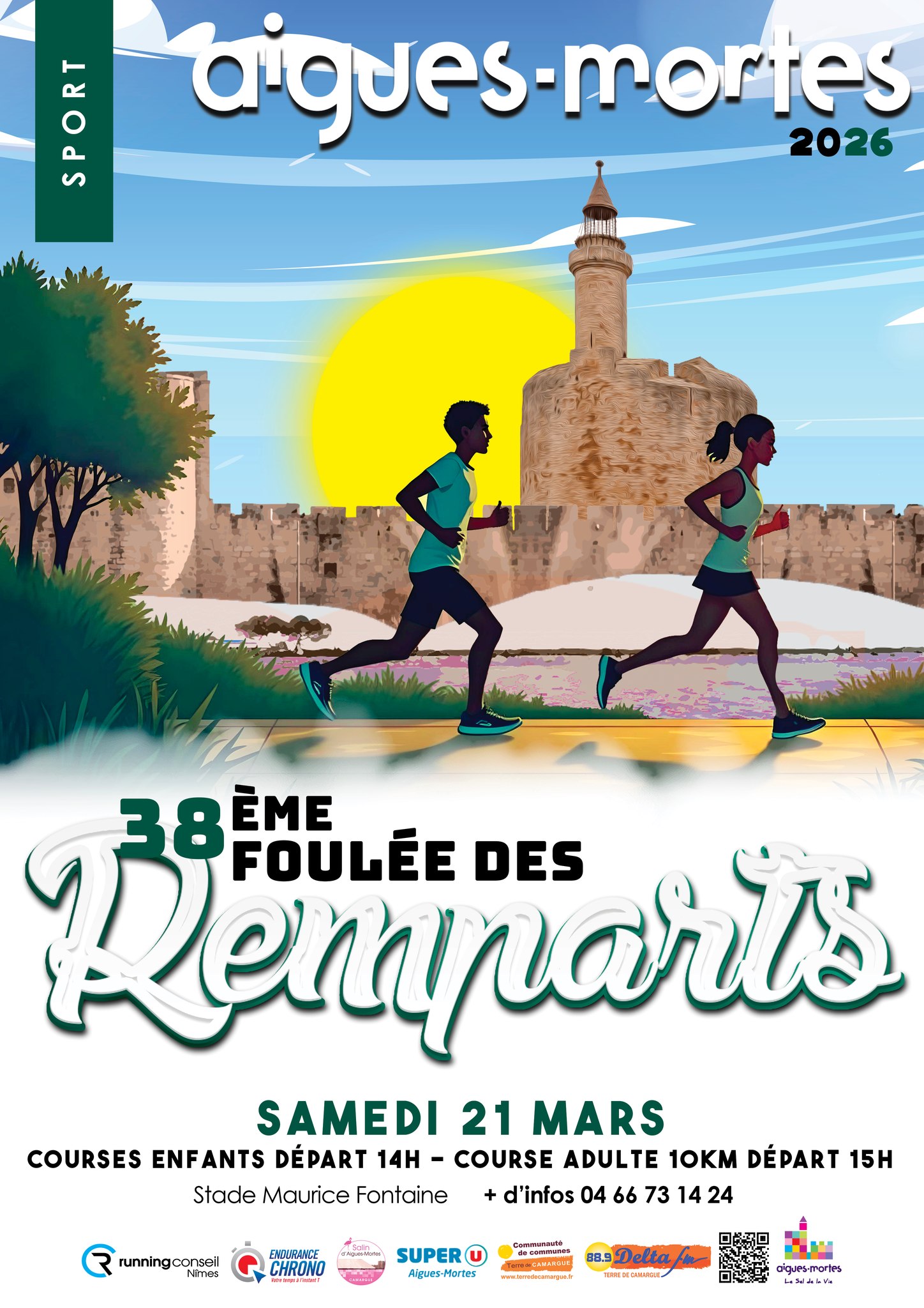 Venez participer à la 38ᵉ Foulée des Remparts, le samedi 21 mars à Aigues-Mortes ! Les inscriptions adultes sont ouvertes en ligne sur Endurance Chrono, avec 600 dossards disponibles. Les résidents d’Aigues-Mortes peuvent bénéficier de 50 codes promo. Les inscriptions pour les enfants débuteront le 16 février au Service des Sports et Associations, Maison des Associations, au Pôle Constance. Inscription en ligne : www.endurancechrono.com ou par courrier (télécharger et remplir le bulletin d’inscription en pièce jointe PDF) et envoyer à : Endurance Chrono, BP 74, 30310 Vergèze.
