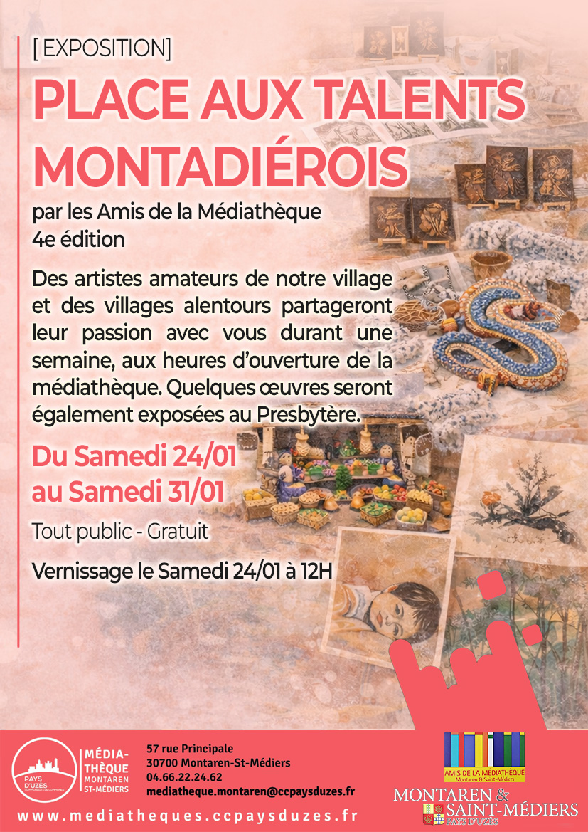 Les amis de la Médiathèque vous présentent des artistes amateurs du village et des environs. Ils partageront leur passion avec vous pendant une semaine. Quelques œuvres seront également exposés au Presbytère.