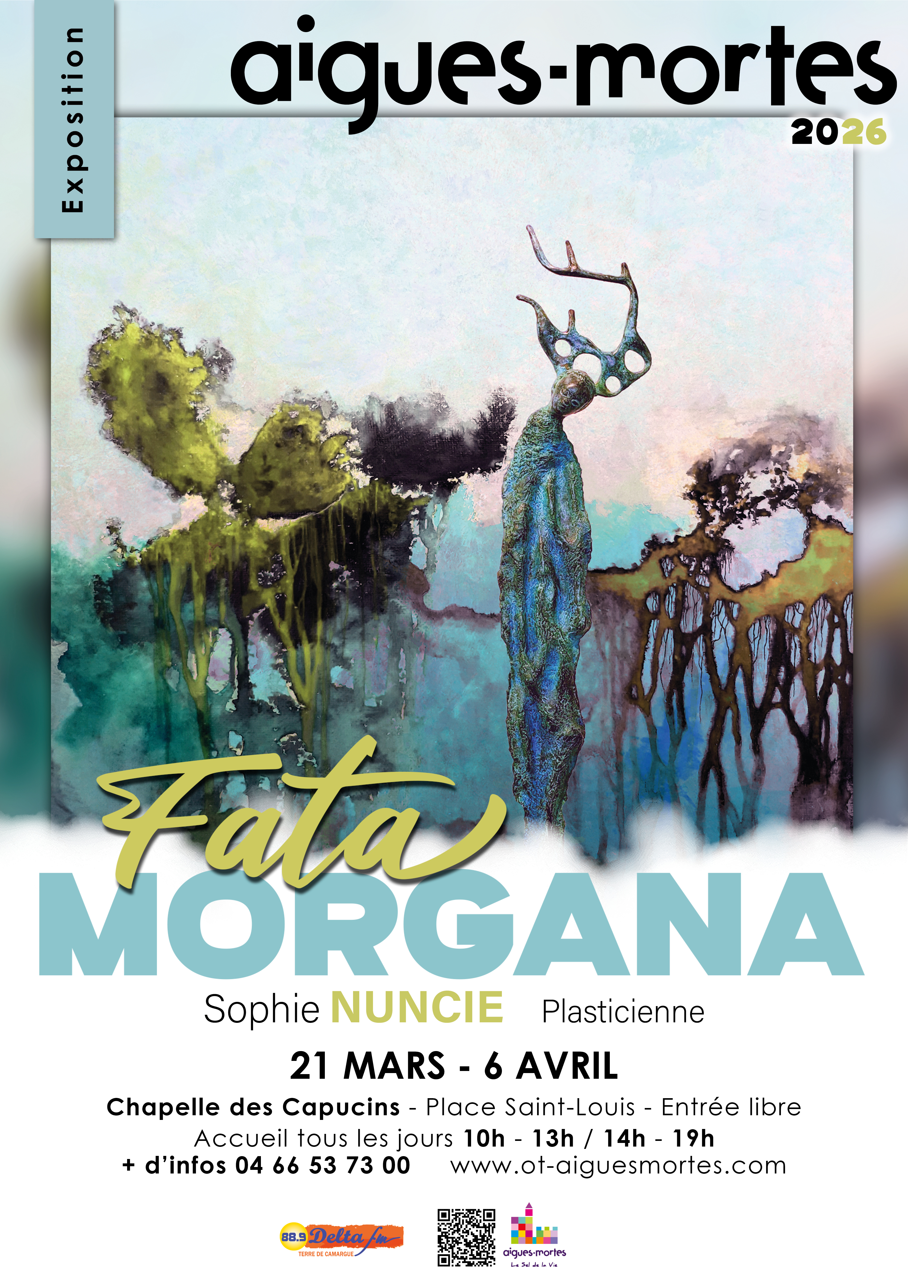 ANNULÉE : Du 21 au 25 mars, la chapelle des Capucins accueille l’exposition Fata Morgana de l’artiste Sophie Nuncie. L’artiste présente une série d’œuvres, faisant la part belle à ses créatures aux étranges métamorphoses et mues poétiques, pour mieux se connecter aux paysages naturels qui les entourent et dont les frontières mouvantes leurs font écho.