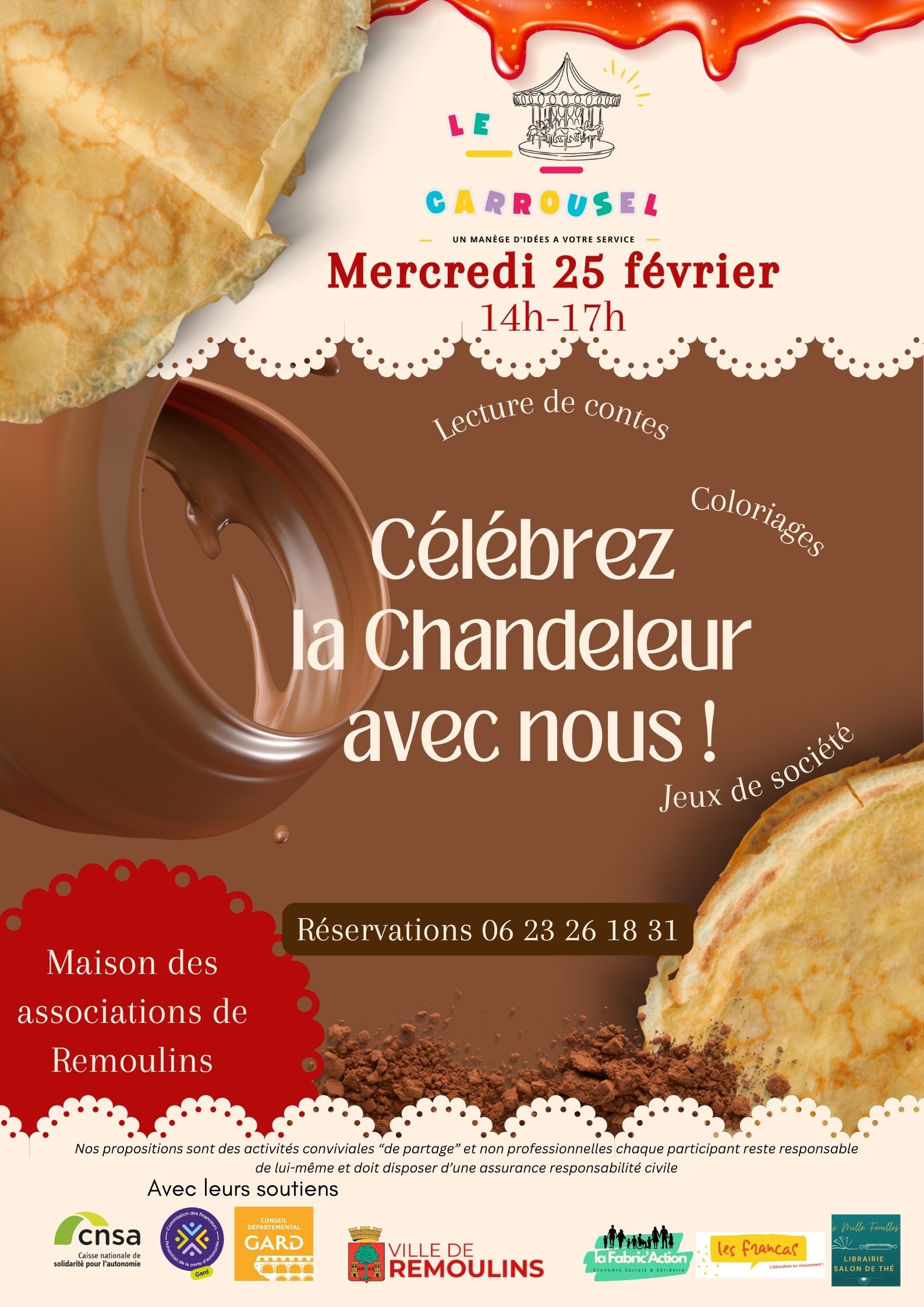 Le Carrousel fête la chandeleur, un moment intergénérationnel à partager en famille, en partenariat avec “les Francas”. Grands-parents, parents, enfants et petits-enfants sont les bienvenus.