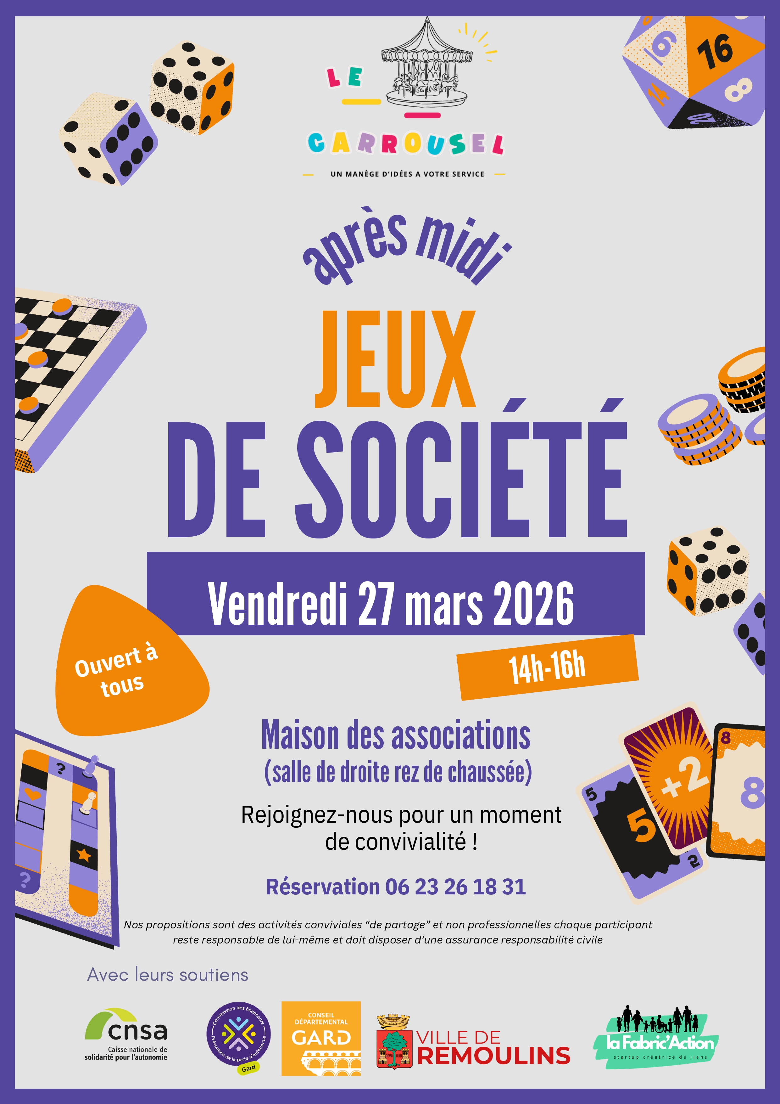 Joignez-vous à nous pour un après-midi chaleureux et amusant. Pensez à apporter votre jeu favori à partager avec les autres participants ! C’est une belle opportunité pour découvrir de nouveaux jeux et profiter d’un moment plaisant ensemble.Sur inscription