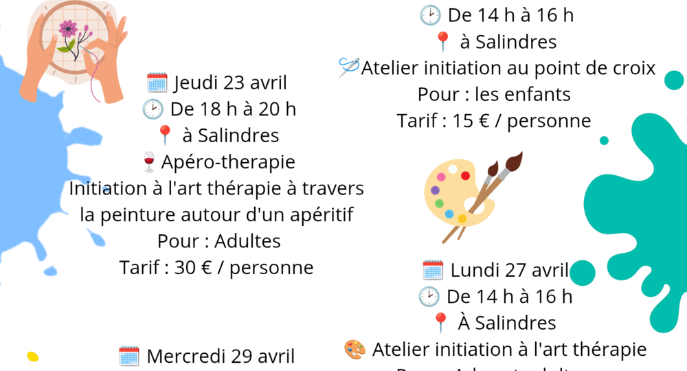 Vacances d’avril : offrez-vous une pause créative !Et si vous profitiez des vacances pour créer, vous détendre et partager un vrai moment pour vous ? Je vous accueille en petit groupe (5 personnes max) pour des ateliers accessibles à tous.