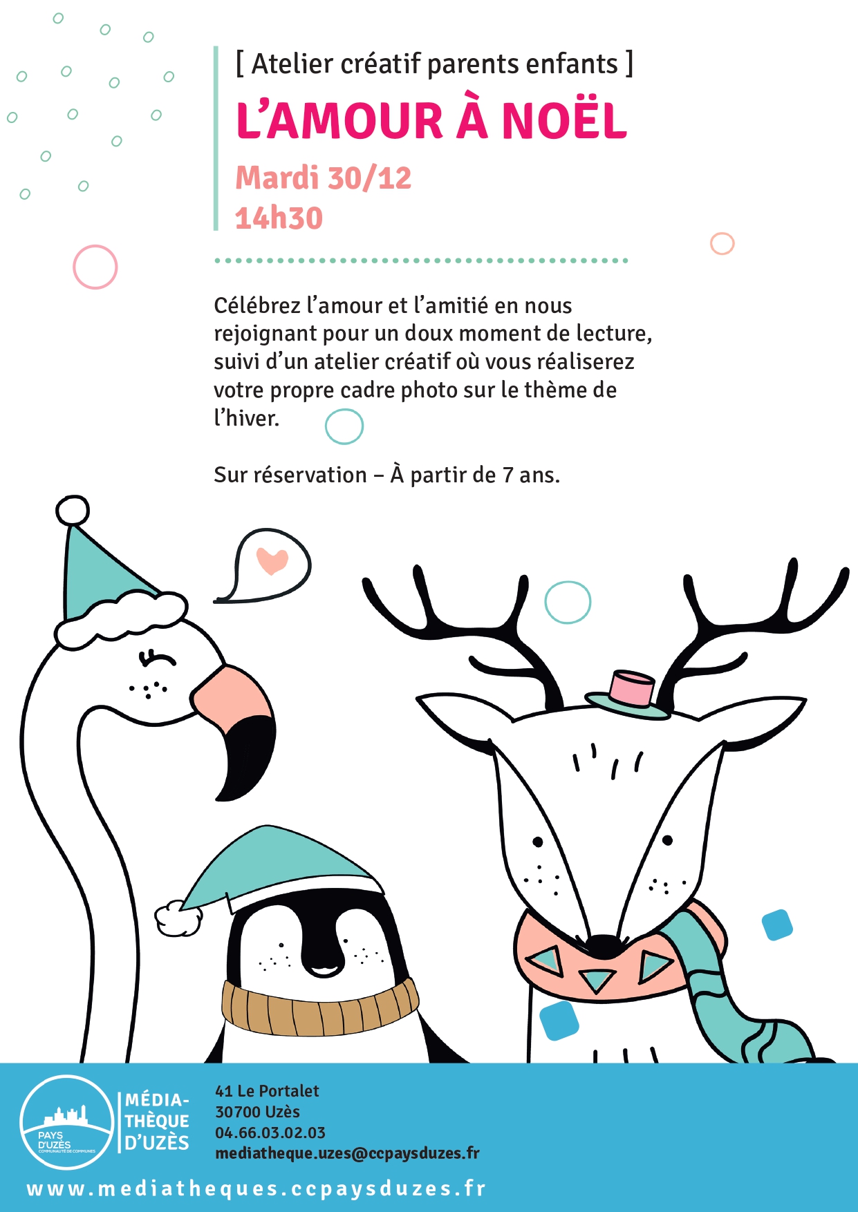 Célébrez l’amour et l’amitié en nous rejoignant à la médiathèque pour un doux moment de lecture, suivi d’un atelier créatif, pour les enfants et les parents. Vous réaliserez votre propre cadre photo sur le thème de l’hiver.