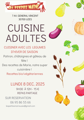 Le Café des Petites mains vous invite à un atelier de cuisine pour adulte sur le thème de l’utilisation des légumes de l’hiver. Des recettes bios et végétariennes préparées par notre super chef Marie !