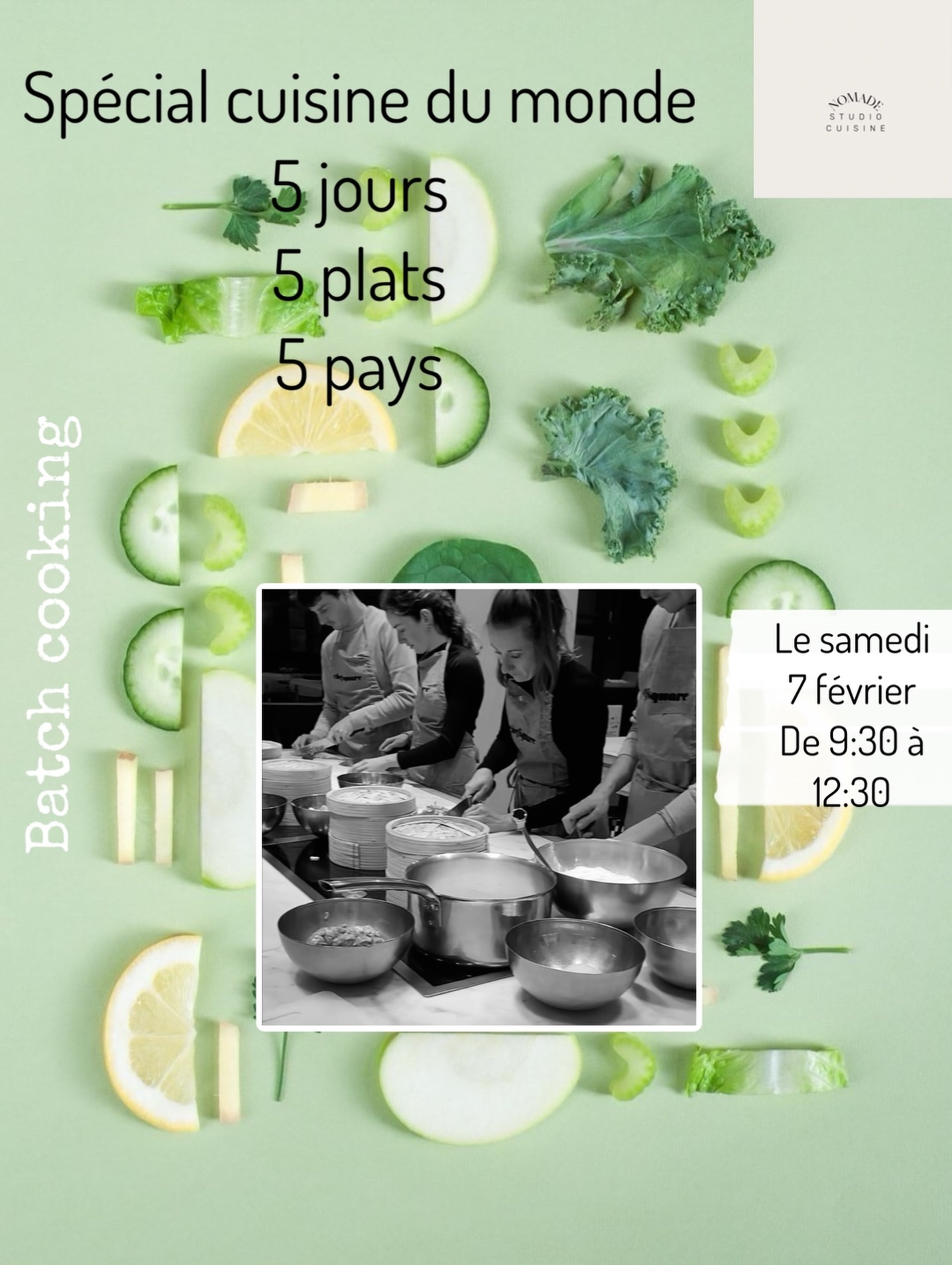 Nomade Studio Cuisine vous invite à découvrir le batch cooking autrement : une cuisine pratique, créative et joyeuse. En quelques heures, apprenez à préparer plusieurs repas maison, savoureux et équilibrés, à partir de produits de saison. L’atelier mêle organisation, conseils pratiques et plaisir de cuisiner ensemble. Pensé pour tous les niveaux, cet atelier permet de gagner du temps au quotidien tout en renouant avec le fait-maison et la convivialité. Vous ne faites pas les courses, vous repartez avec vos plats, des astuces concrètes et l’envie de cuisiner plus sereinement et sans contrainte pour toute la semaine. Des repas de semaine qui vont changer cette année.