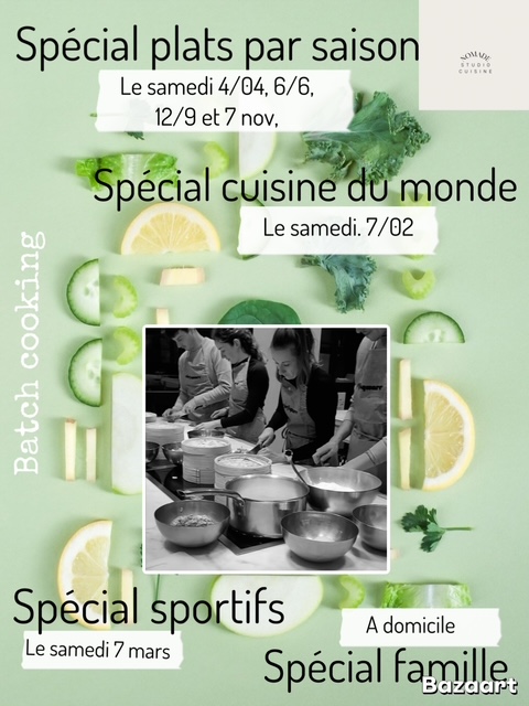 Nomade Studio Cuisine vous invite à découvrir le batch cooking autrement : une cuisine pratique, créative et joyeuse.En quelques heures, apprenez à préparer plusieurs repas maison, savoureux et équilibrés, à partir de produits de saison. L’atelier mêle