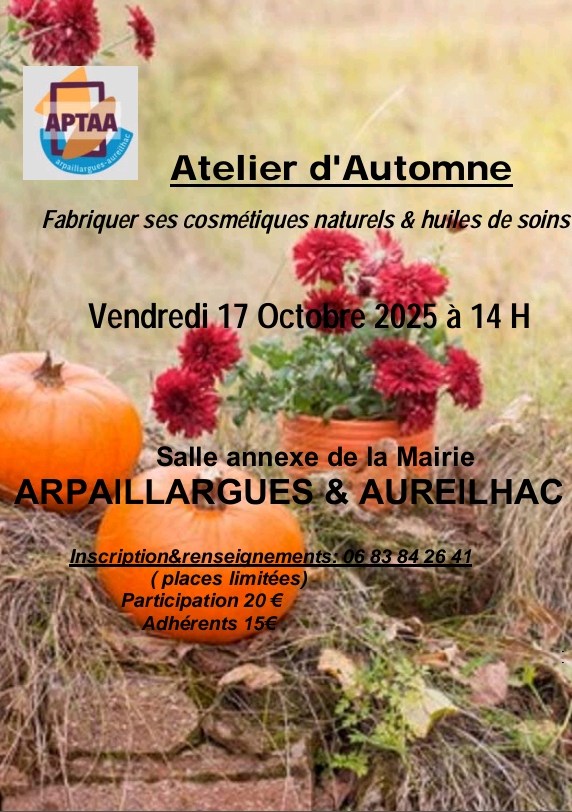 L’atelier d’automne est le moment de fabriquer ses cosmétiques naturels et huiles de soin pour préparer l’hiver.Vous repartez avec toutes les recettes.