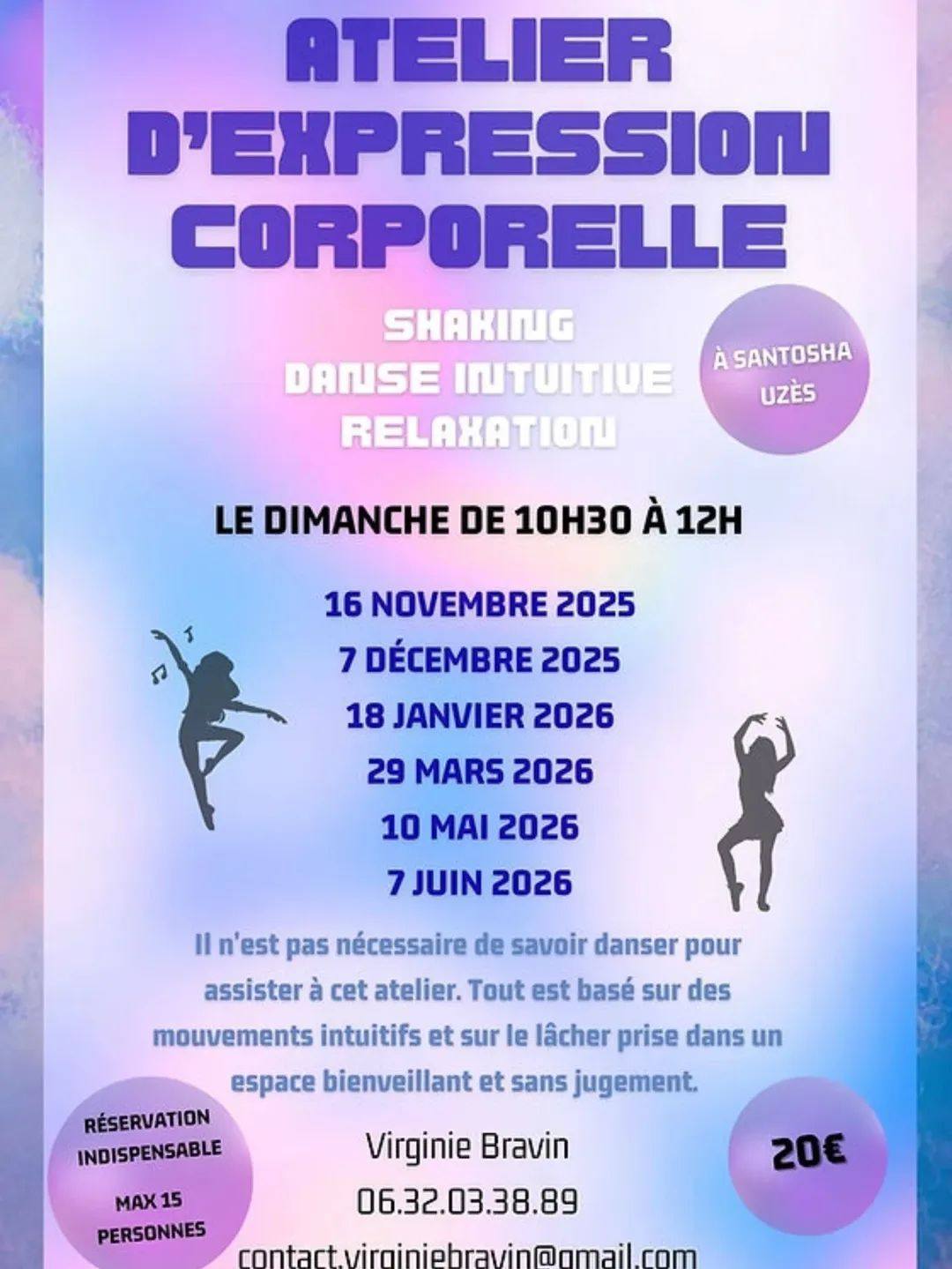 C’est nouveau ! Le centre Santosha vous propose un atelier d’expression corporelle : « Shaking, danse intuitive, relaxation ». S’offrir une parenthèse ludique et créative en se connectant à ses gestes intuitifs, dans un espace sécurisant.