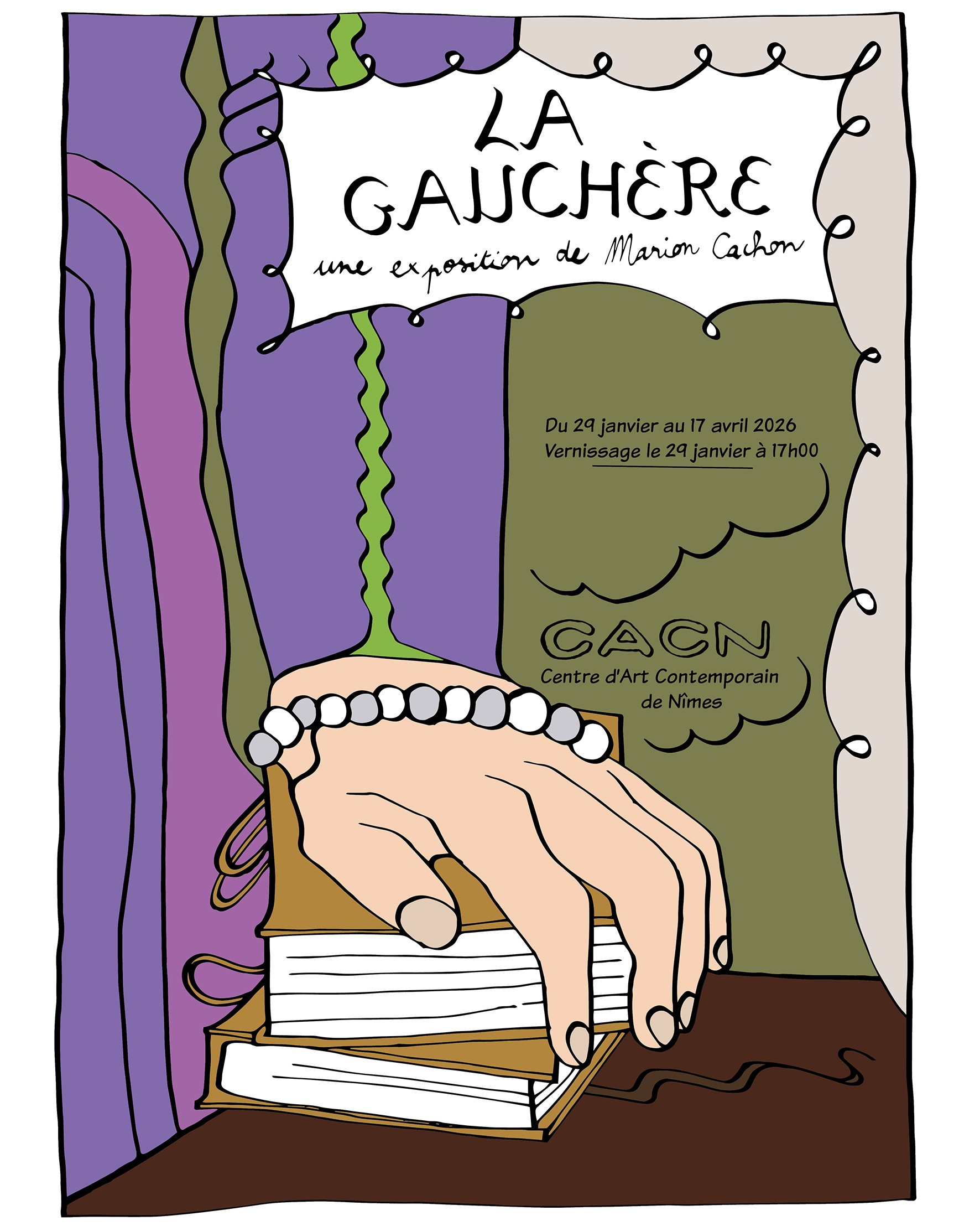Il s’agit d’un atelier dessin de mains opposées pour composer une œuvre commune dans le cadre de l’exposition « La Gauchère » de Marion Cachon, à voir jusqu’au 17 avril 2026.
