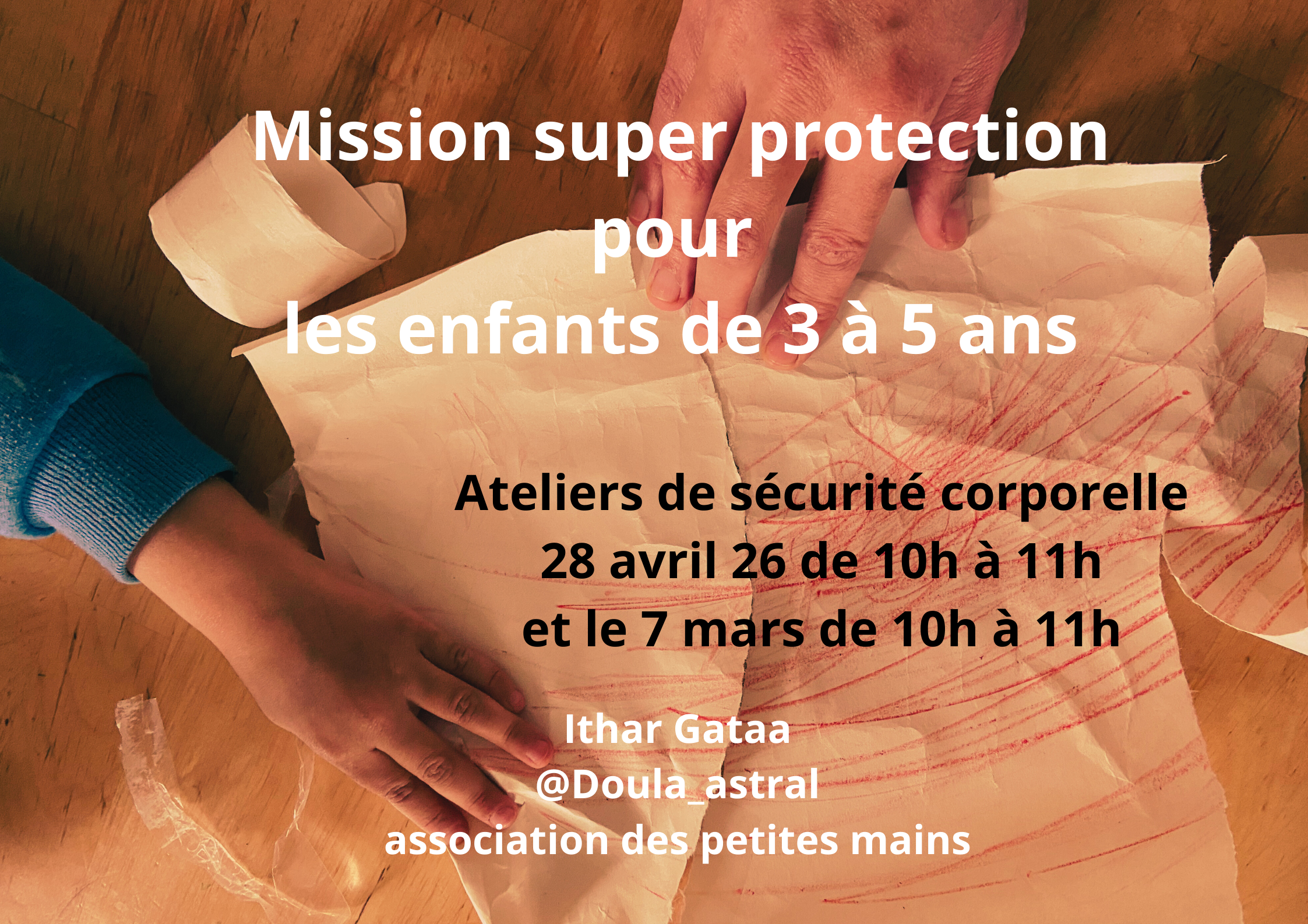 Premier atelier sur le consentement et la sécurité corporelle pour les enfants de 3 à 5 ans. Atelier animé par Ithar Gataa, médecin et Doula, à l’aide d’album jeunesse « Et si on en parlait ? ».