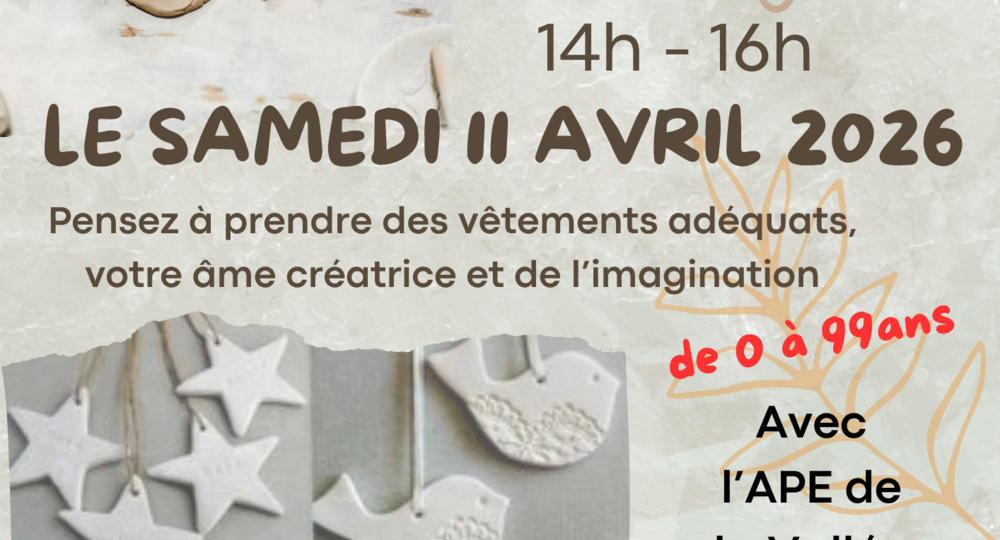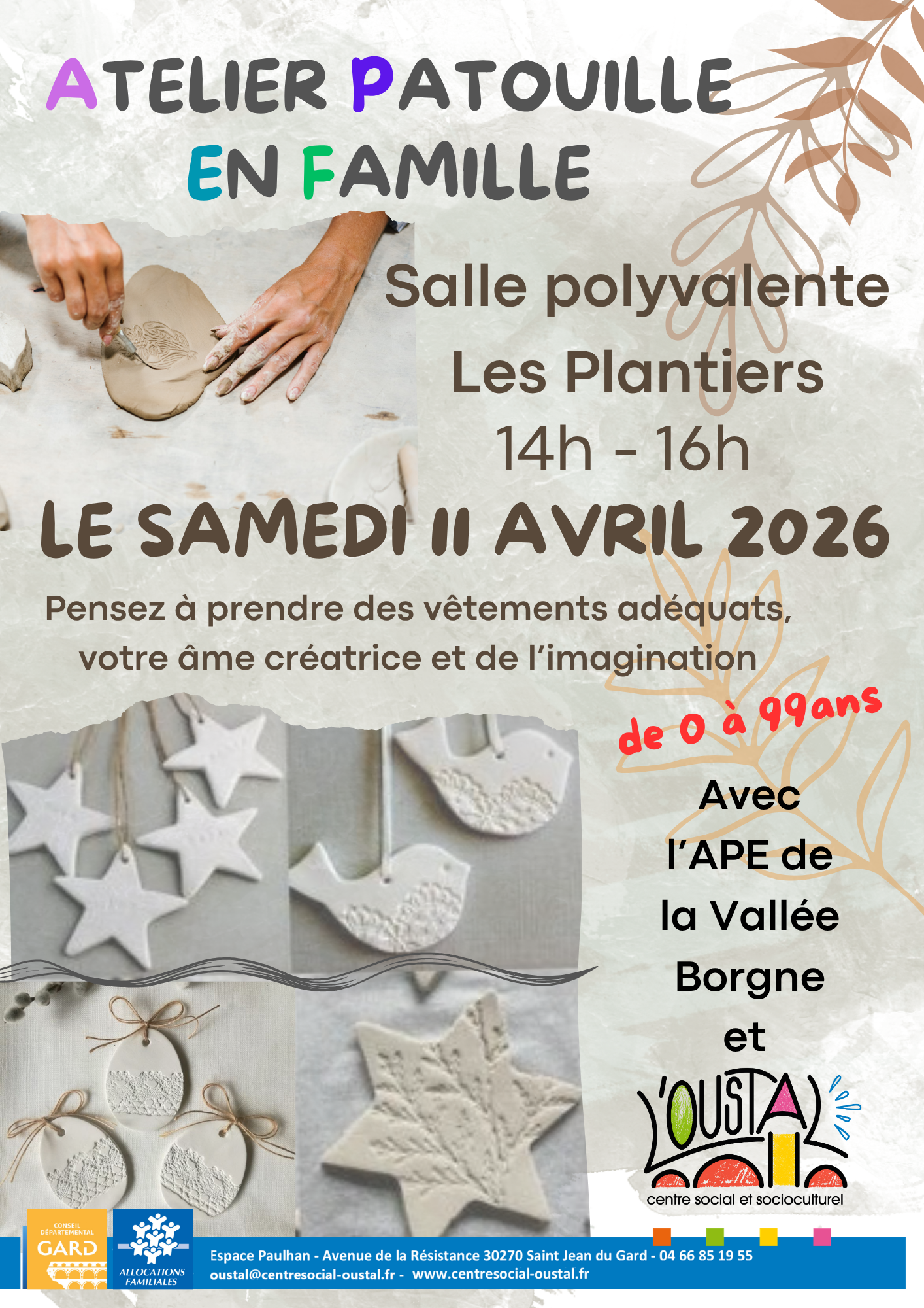 Atelier Créatif – Atelier Patouille en famille de 0 à 99 ans, salle polyvalente- Pensez à prendre des vêtements adéquats, votre âme créatrice et de l’imagination!Organisé par L’Oustal et L’APE de la Vallée Borgne