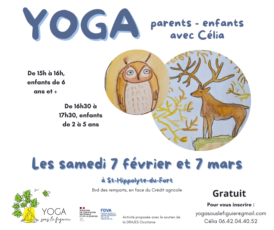 Au programme : * des temps de méditation adaptés pour les enfants, * des jeux de respiration, * des mouvements de relaxation dynamiques, * des postures de yoga autour d’une histoire d’animaux. * une temps de relaxation tout doux avec des instruments de musique originaux