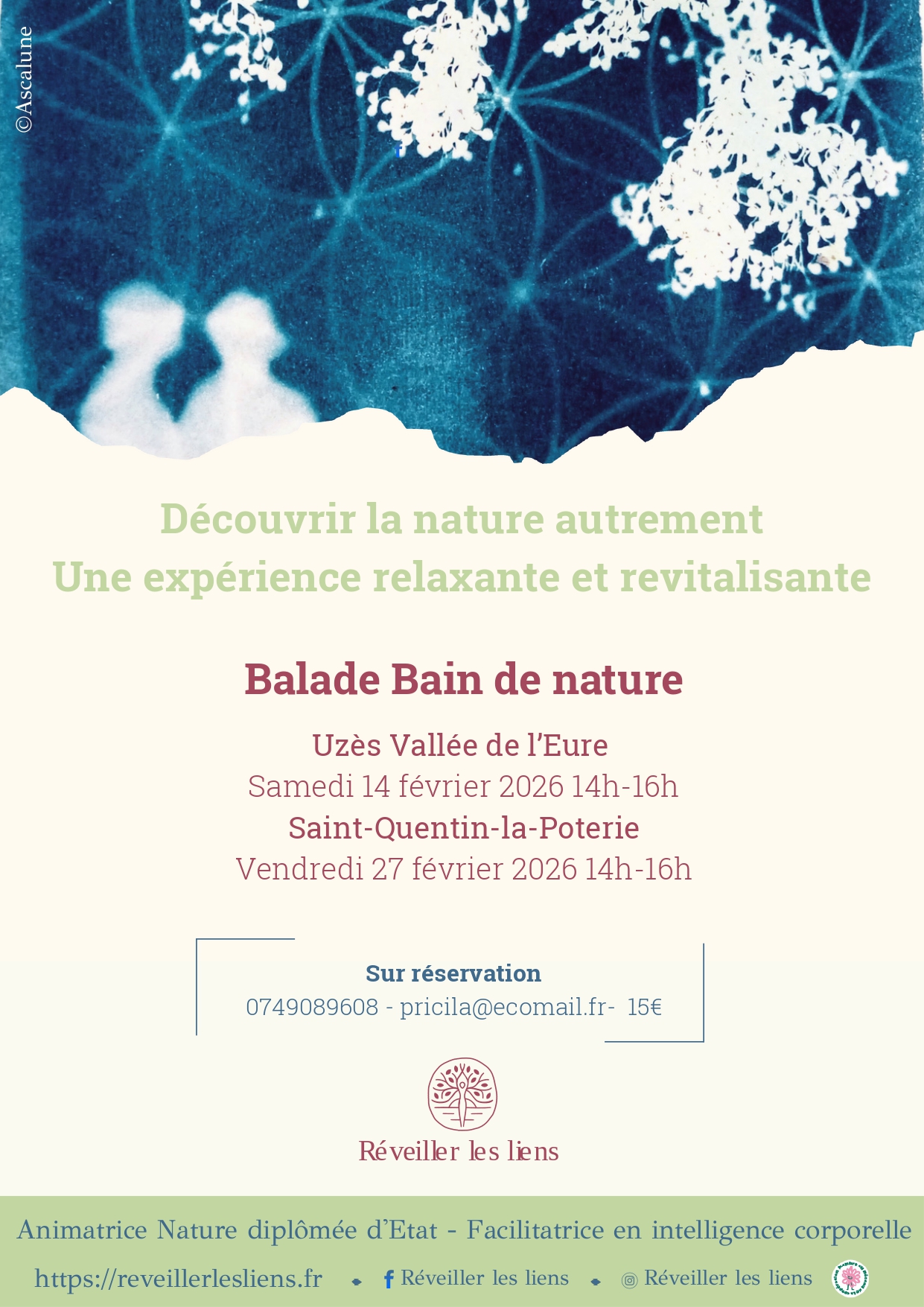 Découvrir la nature autrement. Une parenthèse bien-être pour se ressourcer, alléger le stress et les tensions physiques. Pricila, animatrice nature et facilitatrice en approches corporelles, vous guide en douceur dans cette balade méditative.