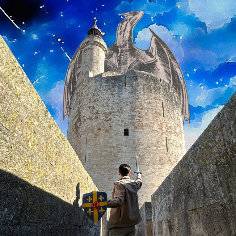 Plongez en famille dans une aventure hors du temps, où les remparts deviennent le théâtre d’un grand récit peuplé de rois, de chevaliers… et peut-être même d’un mystérieux dragon ! Dès les premiers pas franchis à la porte de la Gardette, les enfants sont invités à entrer dans l’histoire de manière ludique et immersive. Chacun choisit son équipement de petit défenseur de la cité : épée, bouclier, … Transformés en véritables gardiens des remparts, ils deviennent les héros d’une épopée inspirée du règne de Saint Louis. Au fil de la balade contée, les pierres prennent vie grâce à un récit captivant. Les familles découvrent comment cette ville fortifiée est née de la volonté d’un roi et comment elle est devenue un point stratégique entre terre et mer. Les enfants écoutent l’histoire tout en observant les lieux, avant d’être appelés à passer à l’action. Car une menace plane… Un danger pourrait rôder autour des remparts ! Les jeunes visiteurs doivent alors s’équiper, reconnaître les armes et comprendre leur utilité pour partir en mission de surveillance. Chaque étape du parcours devient une épreuve à relever : observer, réfléchir, deviner.