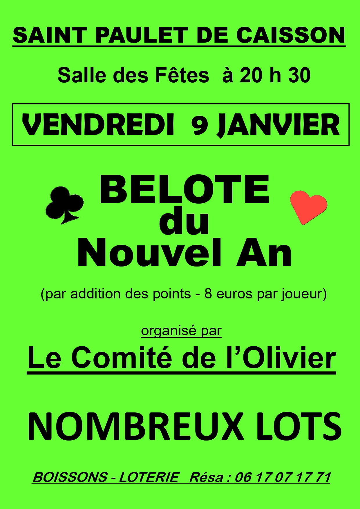 Concours par addition des points – 8 euros par joueur Nombreux lots