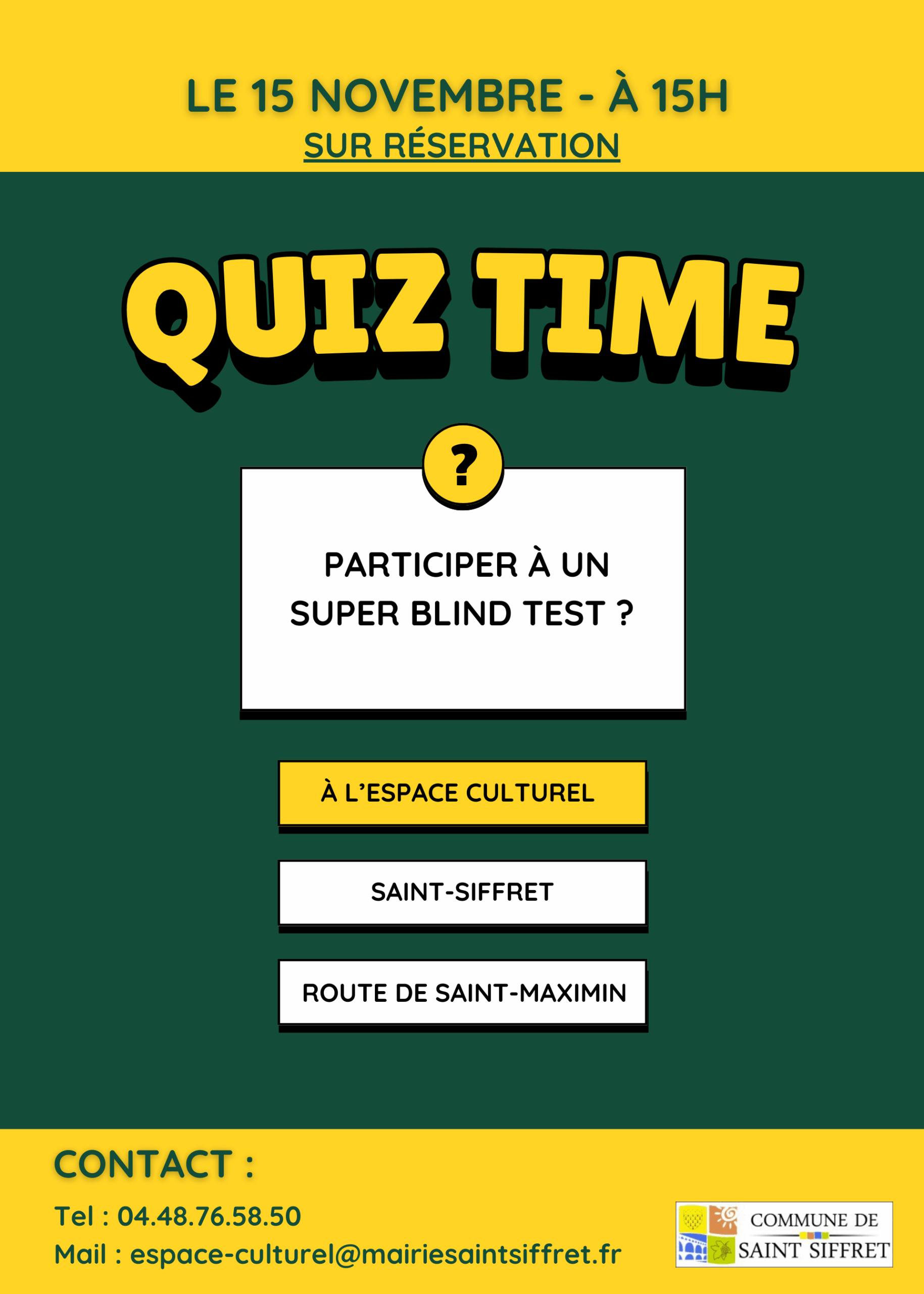 Vous aimez la musique ? Vous adorez jouer en équipe et tester vos connaissances ?Venez relever le défi lors de notre Blind test musical !Qui sera le champion du blind test ? Venez tenter votre chance… et surtout partager un bon momen
