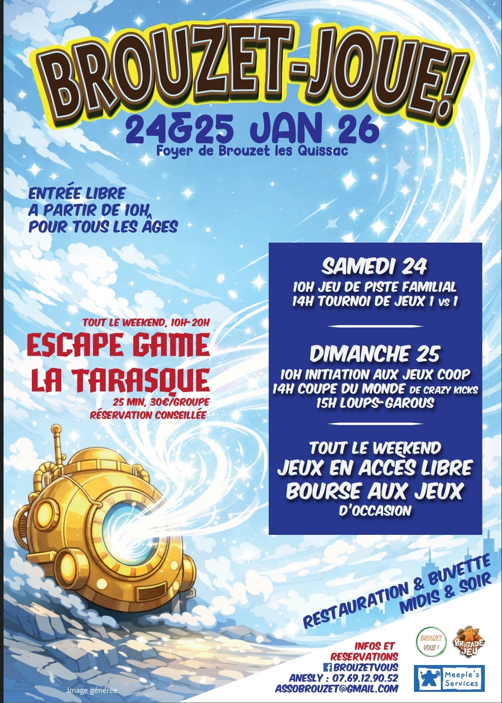 Pour les amoureux du jeu, rendez vous les samedi 24 et dimanche 25 janvier au foyer de Brouzet les Quissac à partir de 10h.Au programme : des animations et des jeux pour les petits comme pour les grands, à venir découvrir seul comme en famille.