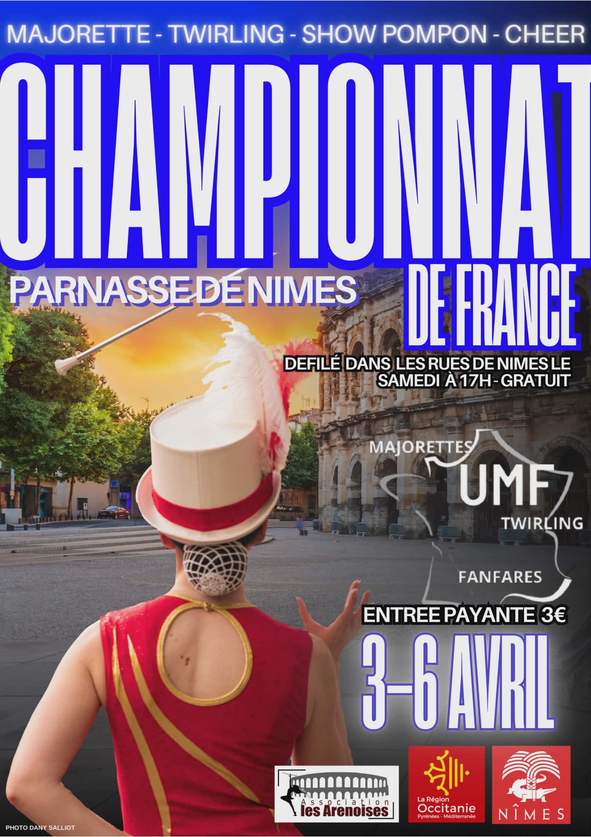 Les Majorettes les Arénoises de Nimes et l’union des majorettes Françaises organisent le Championnat National au Parnasse. Il réunira 27 clubs de majorettes, twirling, pompons et cheerleading de toute la France