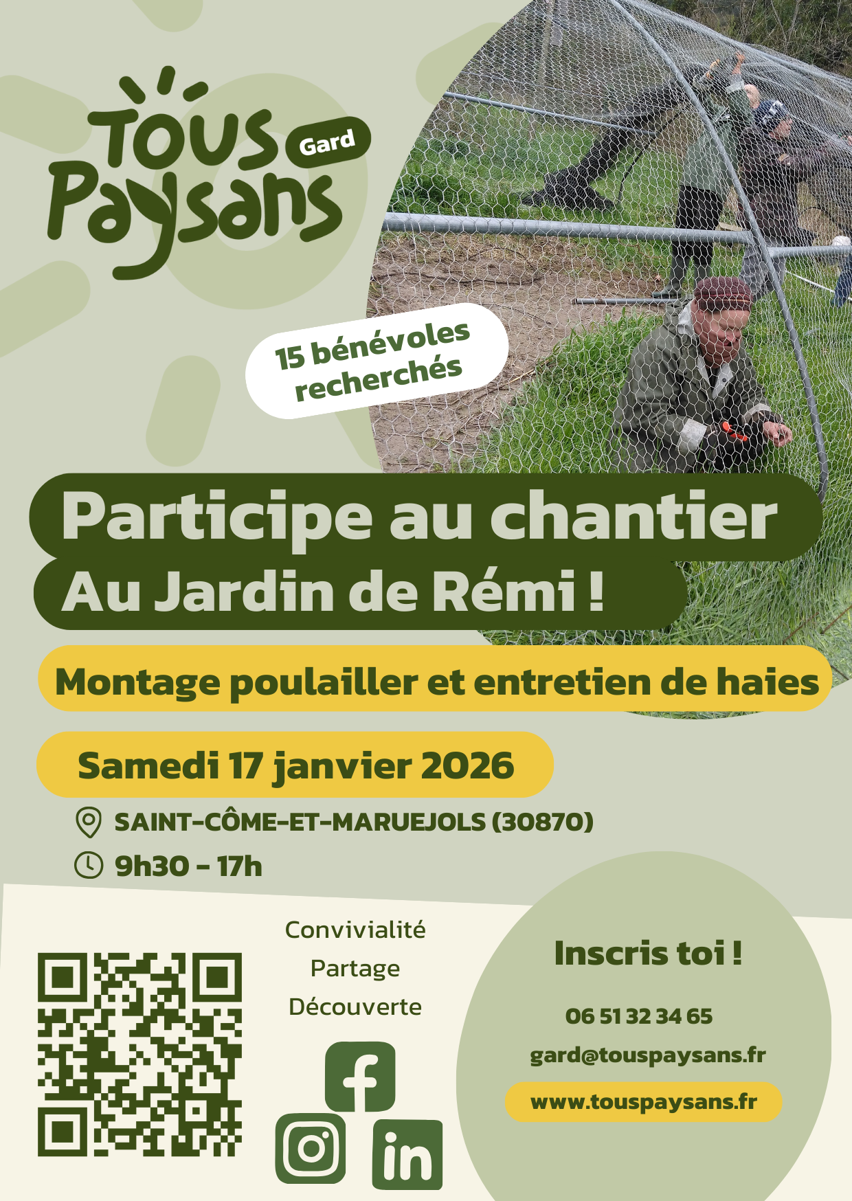 L’association Tous Paysans soutient l’agriculture paysanne par l’organisation de chantiers participatifs visant à donner un coup de main aux agriculteurs du territoire et à faire découvrir le fonctionnement des fermes.