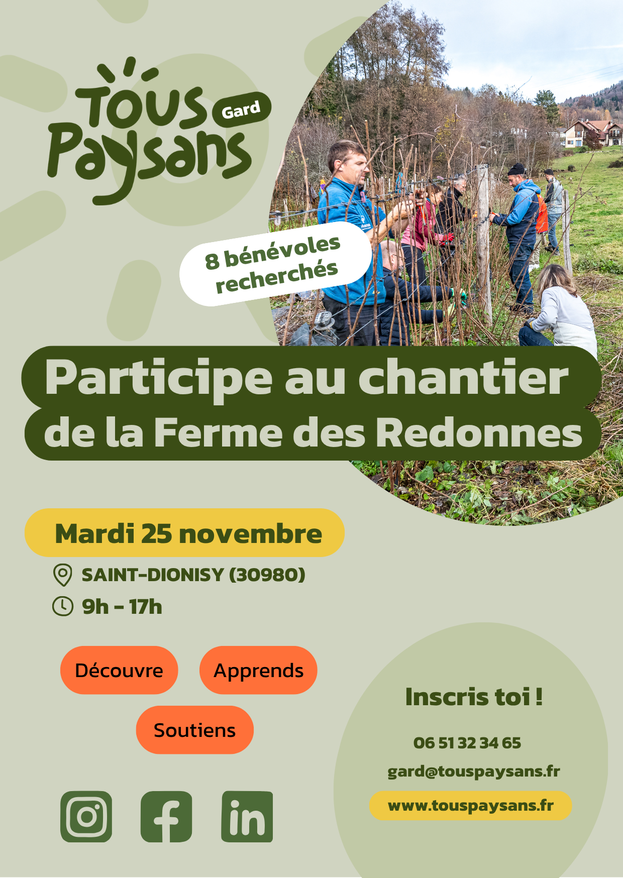 L’association Tous Paysans soutient l’agriculture paysanne par l’organisation de chantiers participatifs visant à contribuer aux travaux agricoles et à faire découvrir le fonctionnement des exploitations.