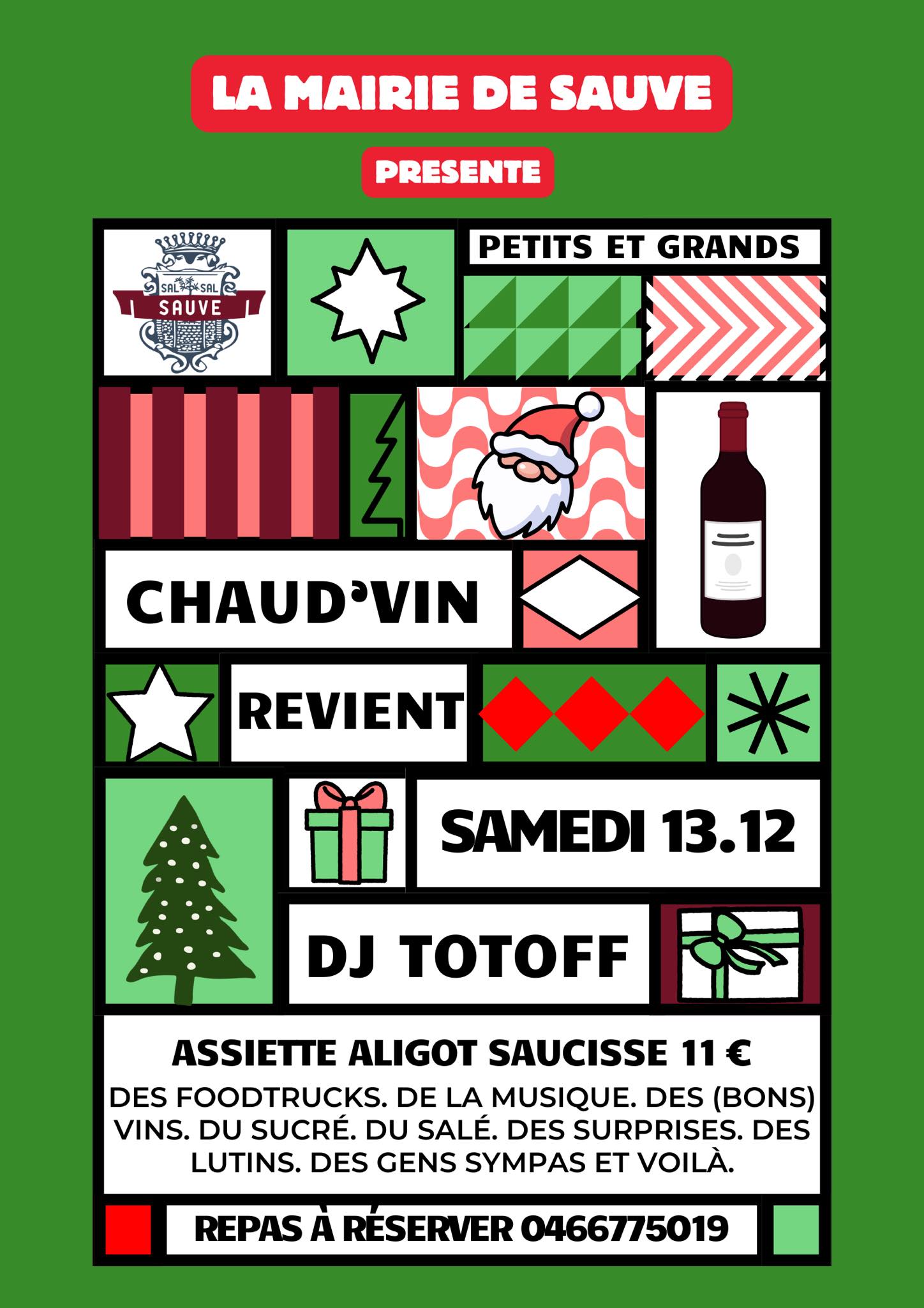 Des foodtrucks. De la musique. Des (bons) vins. Du sucré. Du salé. Des surprises. Des lutins. Des gens sympas et voilà. Aux platines DJ TOTOF Au menu : Assiette Aligot saucisse (11€) – Sur réservation au 04 66 77 50 19