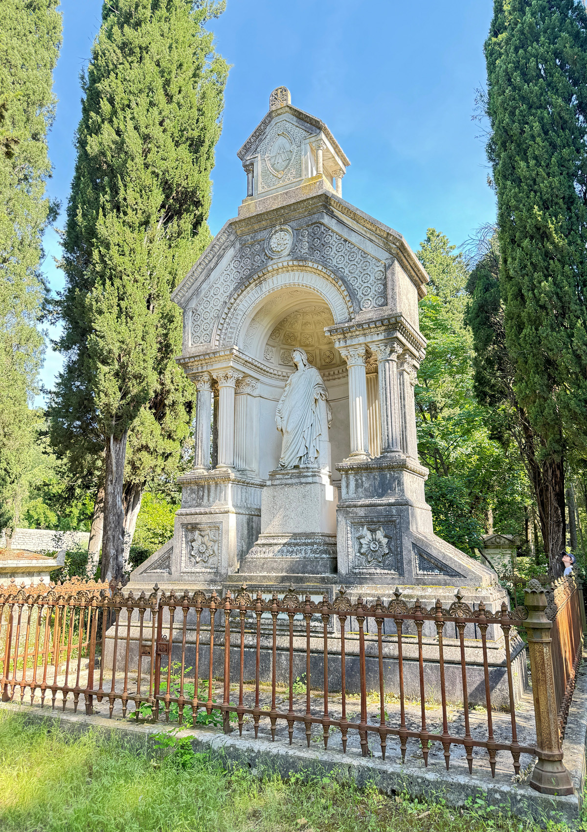 … auquel une végétation abondante – arbres de haute futaie qui semblent veiller sur les tombes, buissons et sous-bois – donne des allures de forêt enchantée.